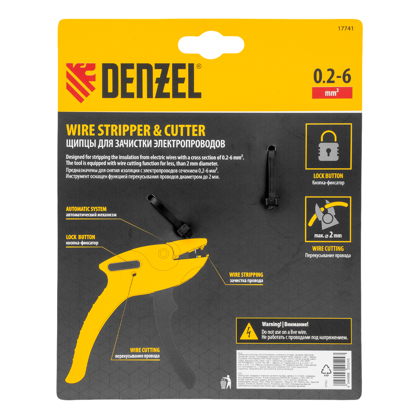 Щипцы для зачистки электропроводов, сечением 0,2-6 мм2, функция обрезания проводов Denzel