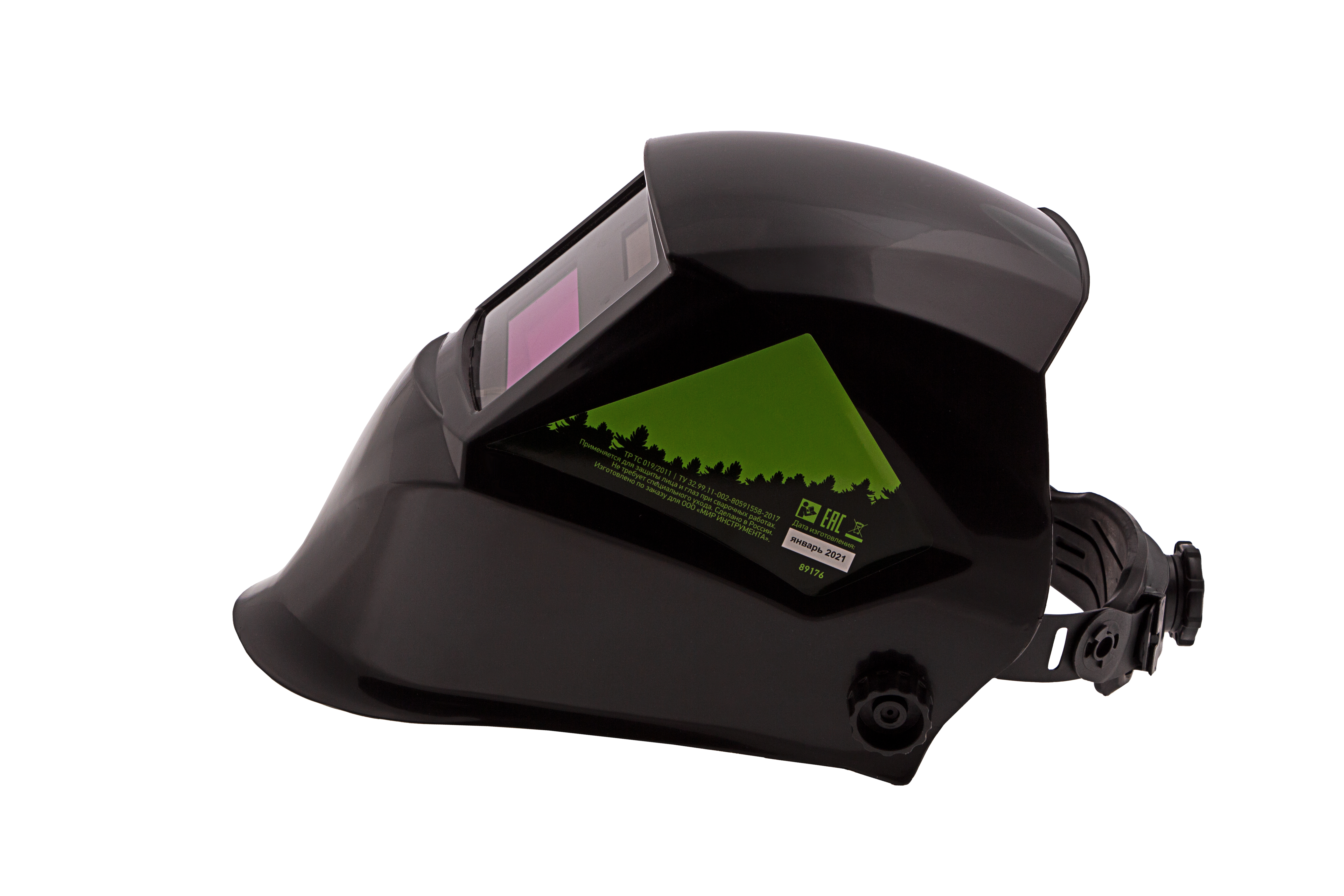 - Удобная посадка на голове — регулируемое оголовье позволяет надежно зафиксировать щиток, чтобы он не спадал во время работы.