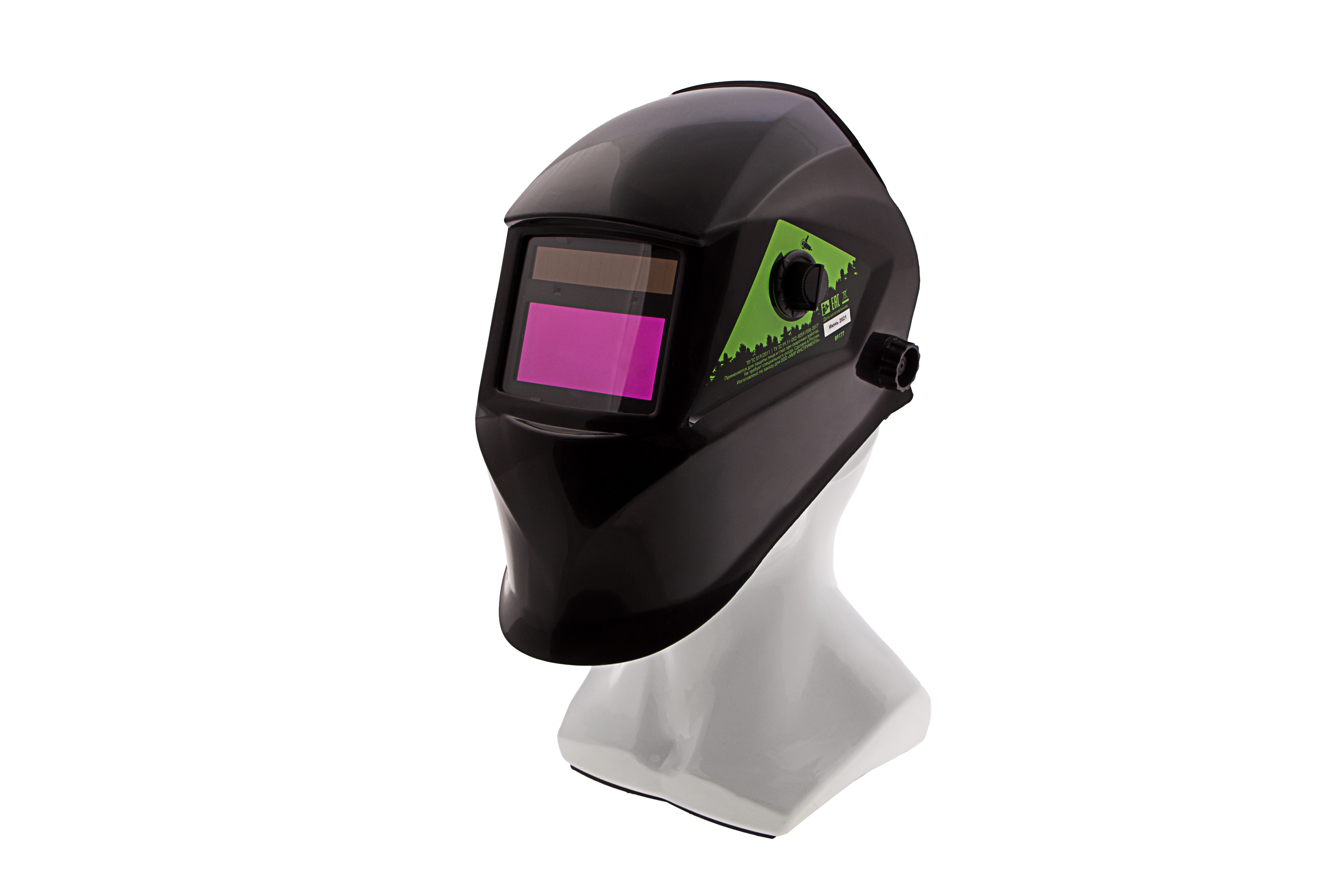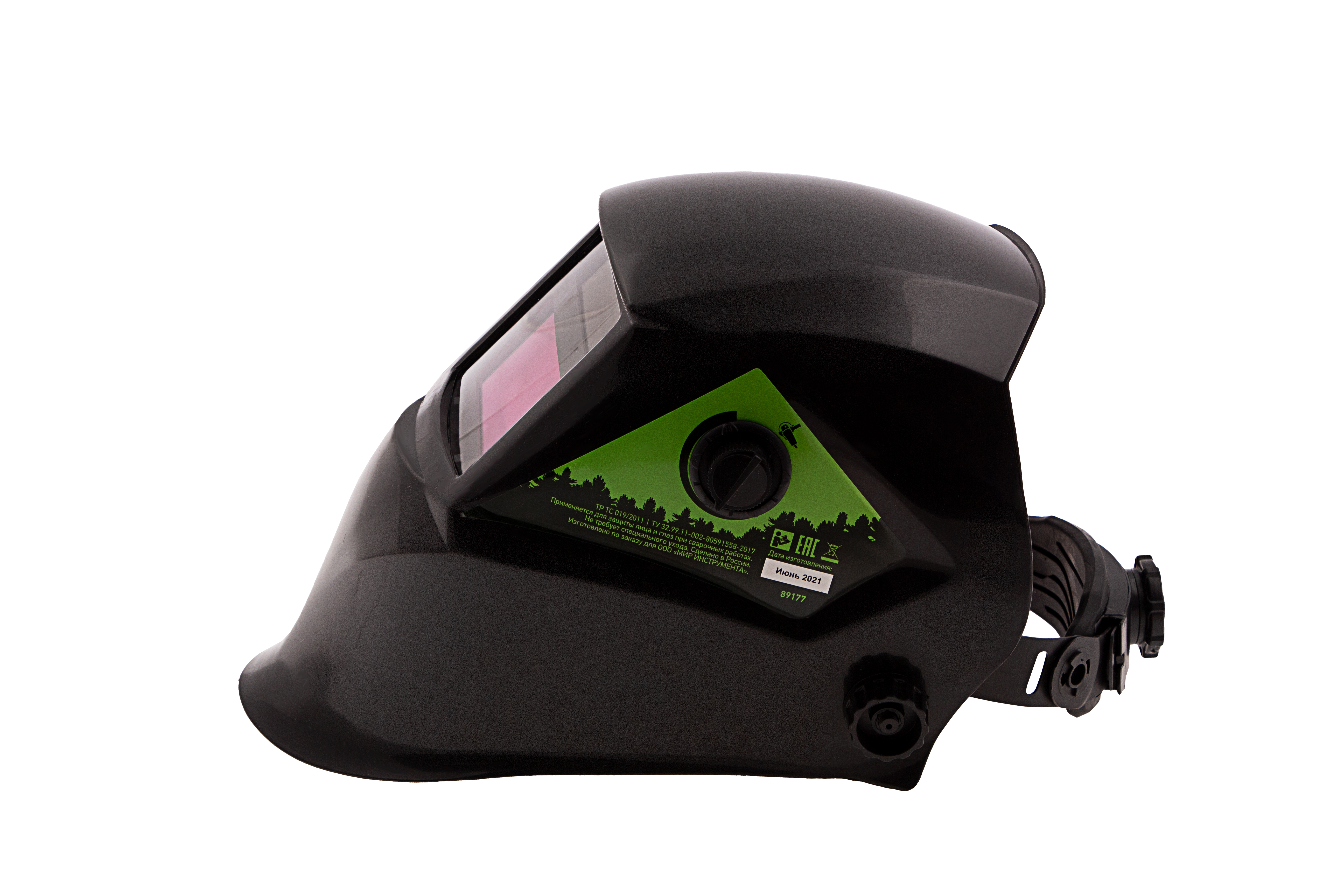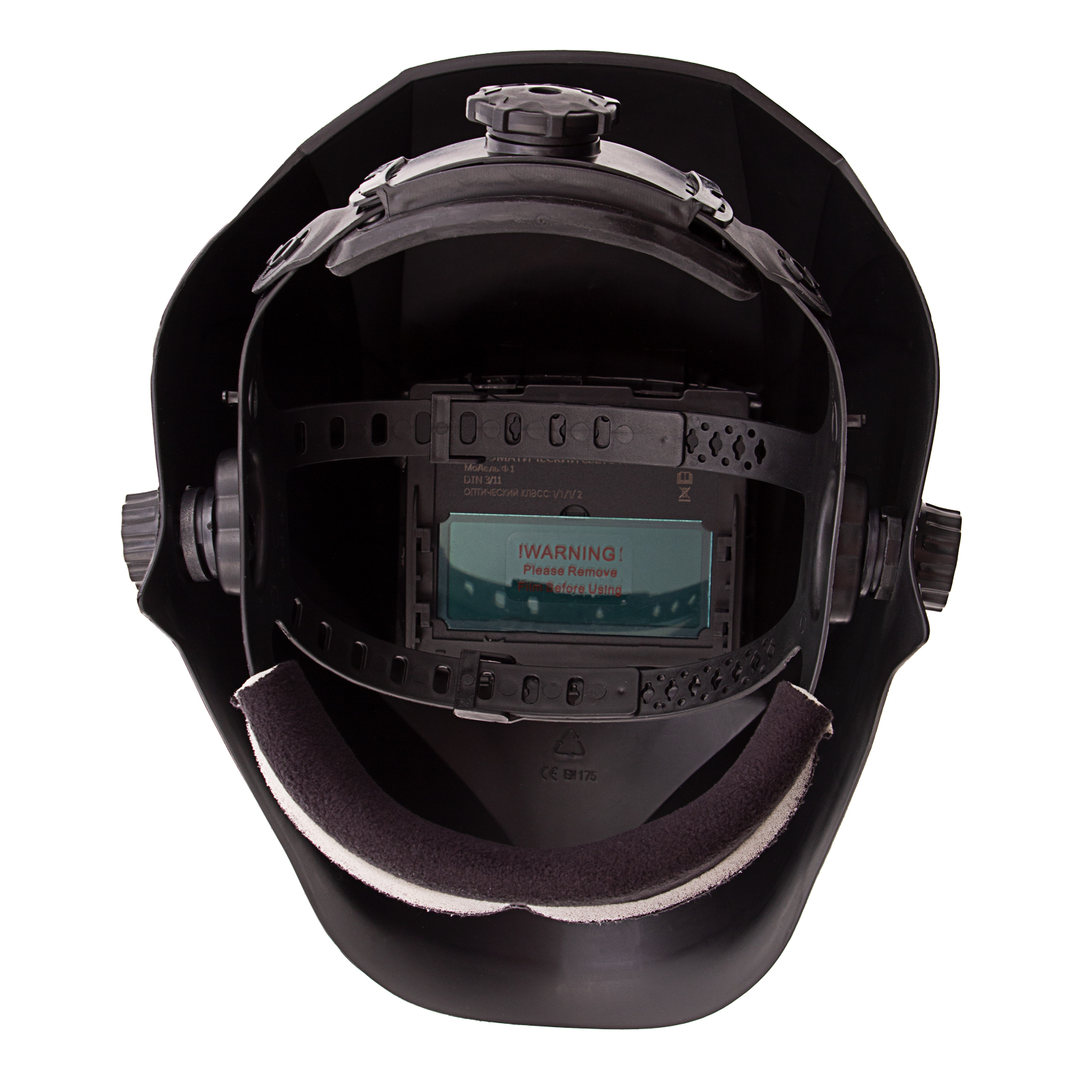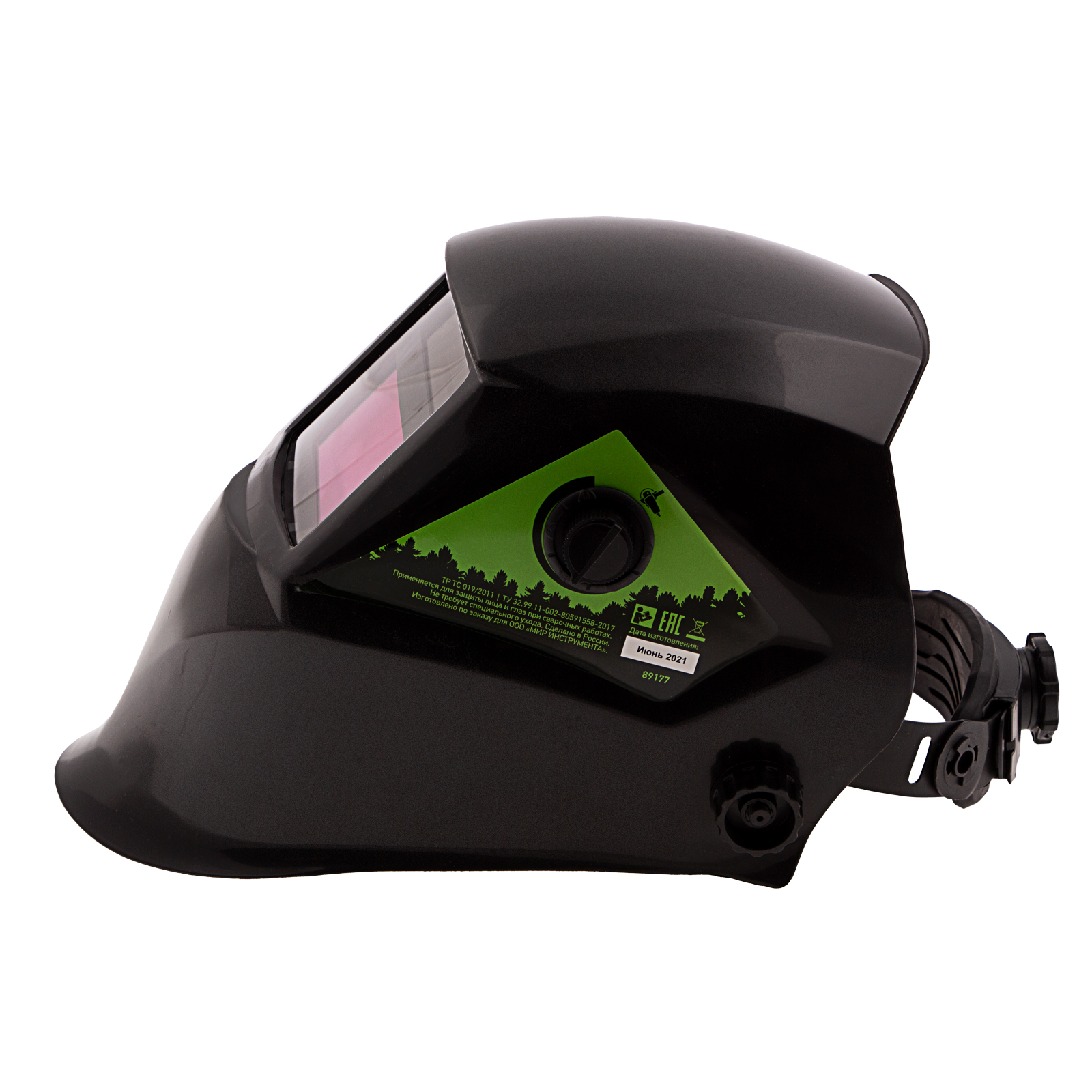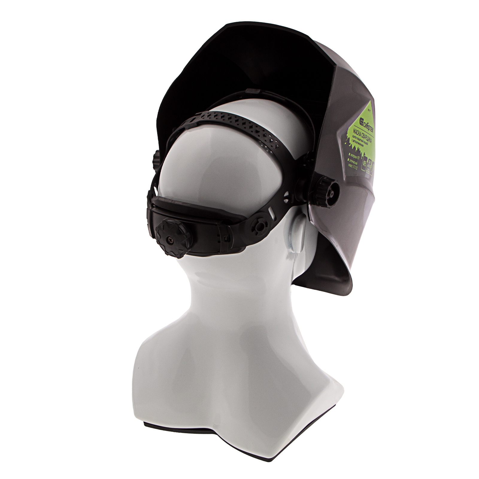 - Комфортная работа — регулируемое оголовье надежно фиксирует щиток, а поролоновая накладка и силиконовый обтюратор уменьшают трение ободка о лоб.