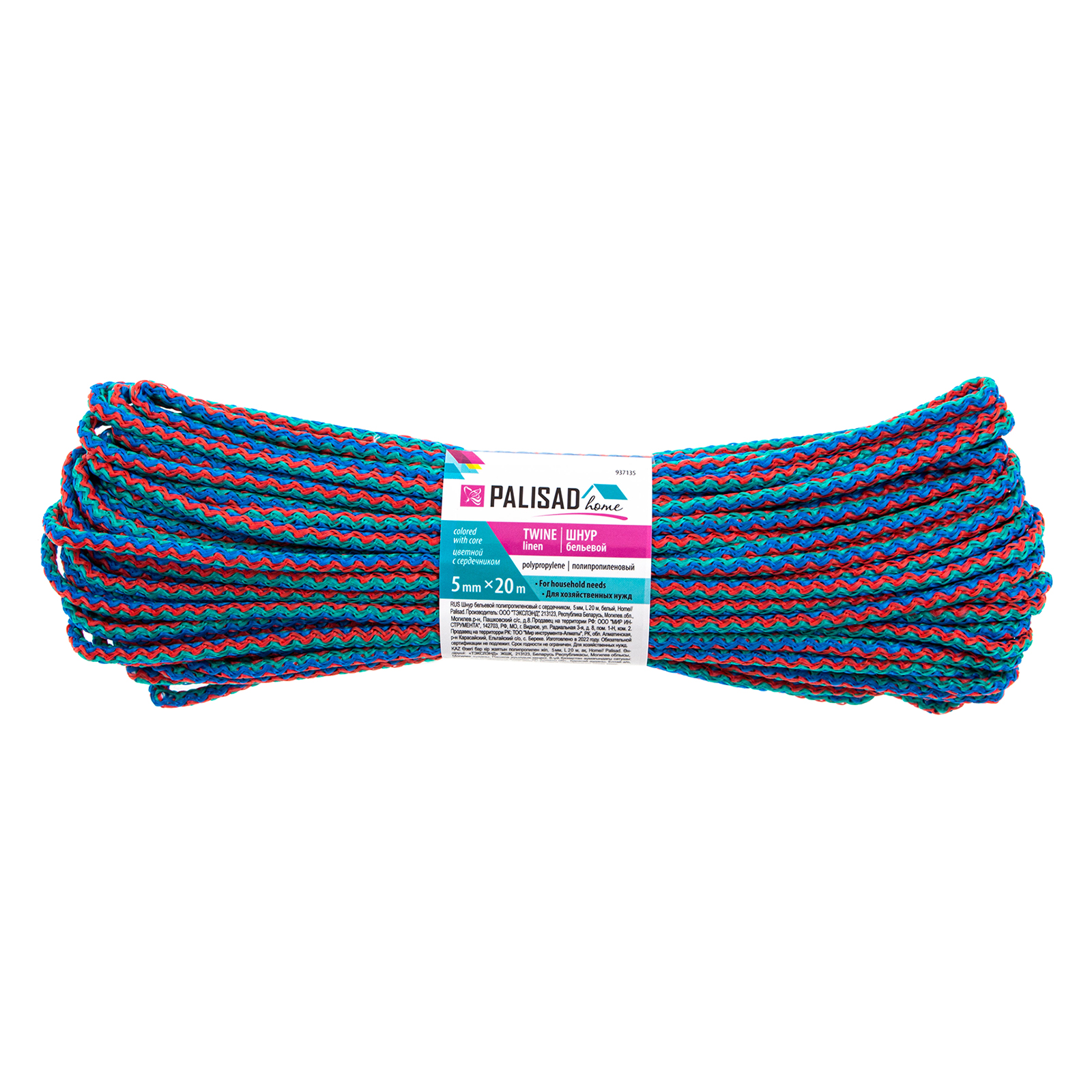Шнур бельевой полипропиленовый с сердечником, 5 мм L 20 м, цветной, Home Palisad в Санкт-Петербурге