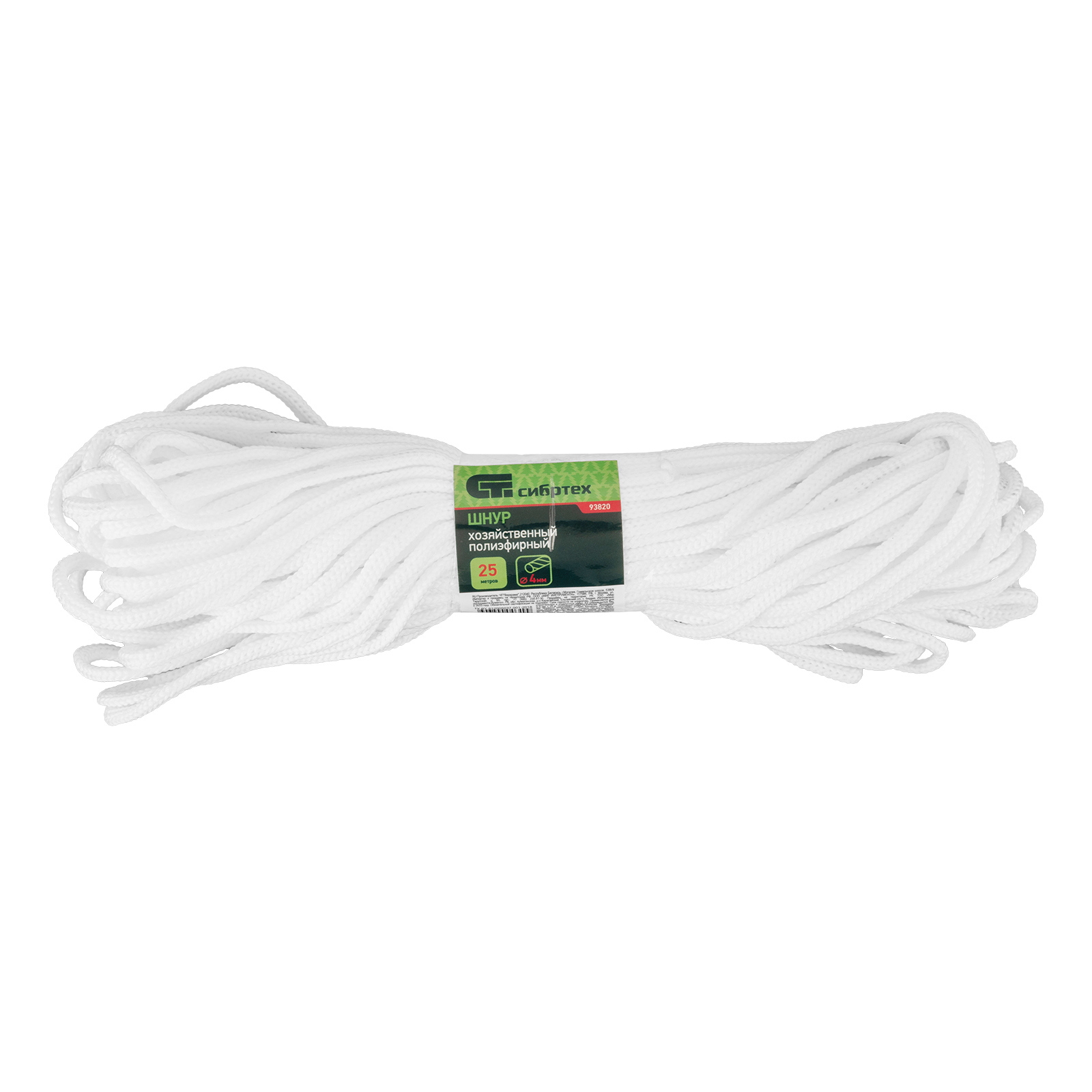Шнур хозяйственный, D 4 мм, L 25 м, полиэфирный Сибртех в Санкт-Петербурге