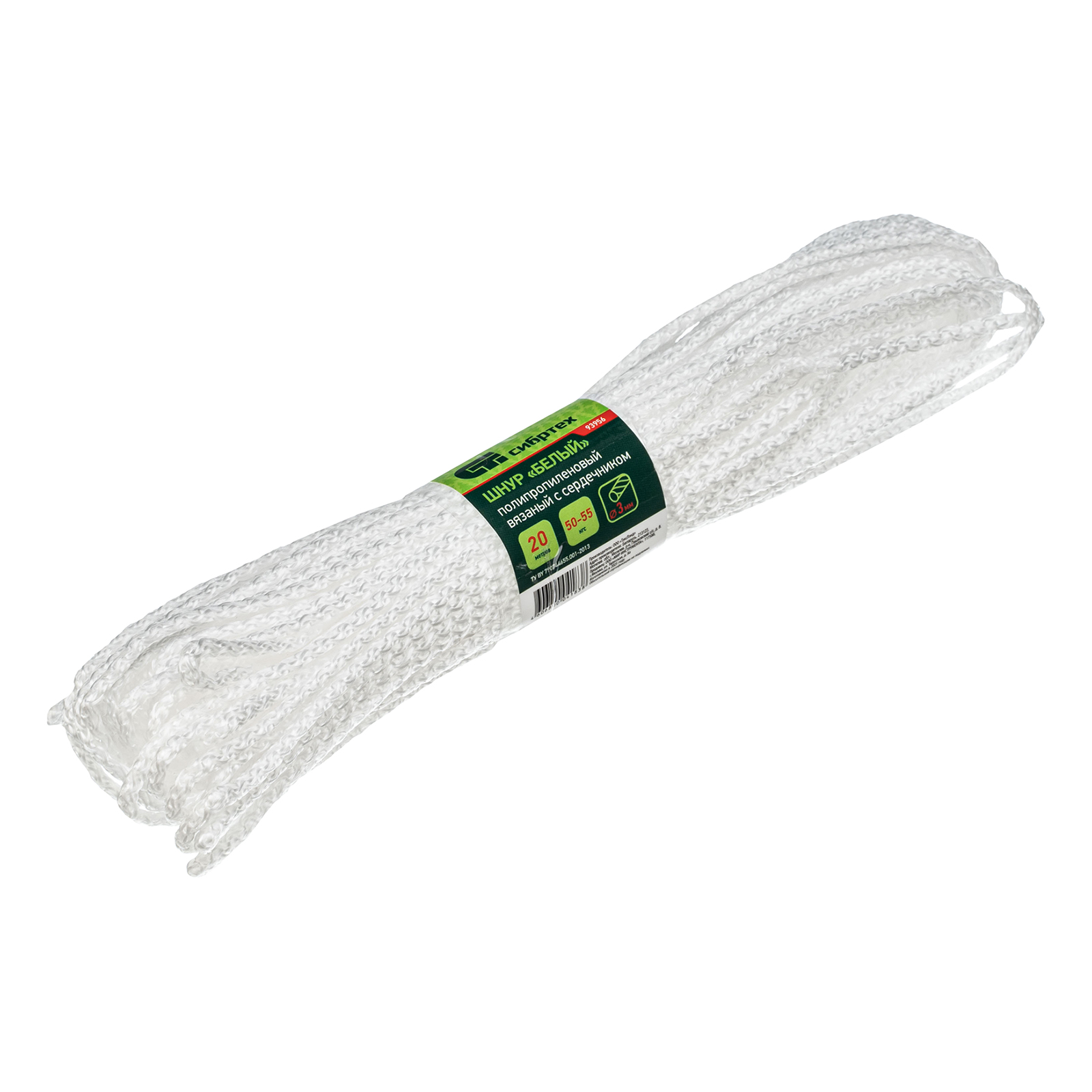 Шнур вязаный полипропиленовый с серд. белый, 3 мм, L 20 м, Сибртех в Санкт-Петербурге