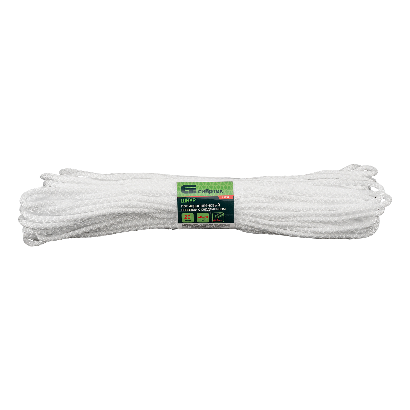 Шнур вязаный полипропиленовый с серд. белый, 4 мм, L 20 м, Сибртех в Санкт-Петербурге