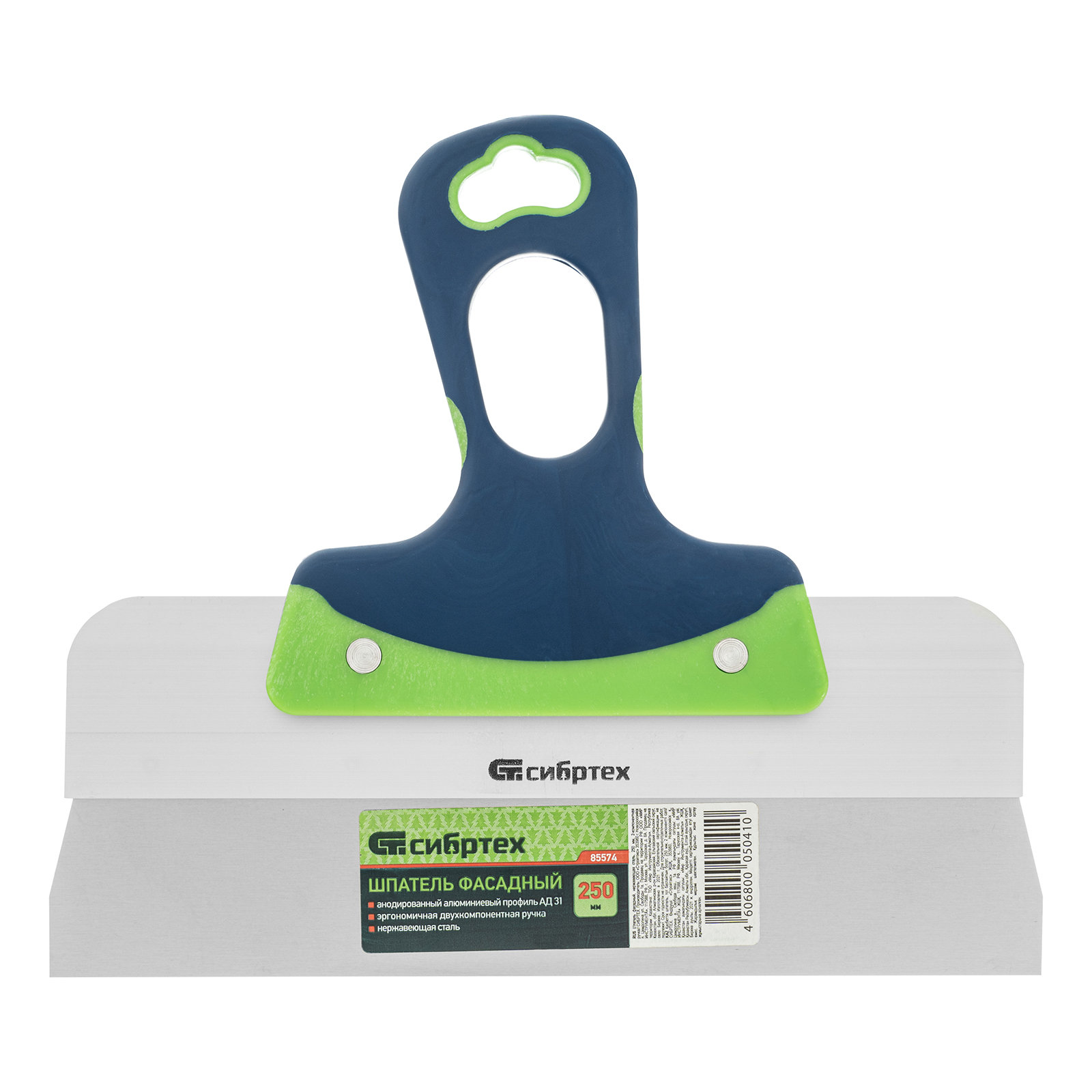 Шпатель фасадный, нержавеющая сталь, 250 мм, двухкомпонентная ручка Сибртех
