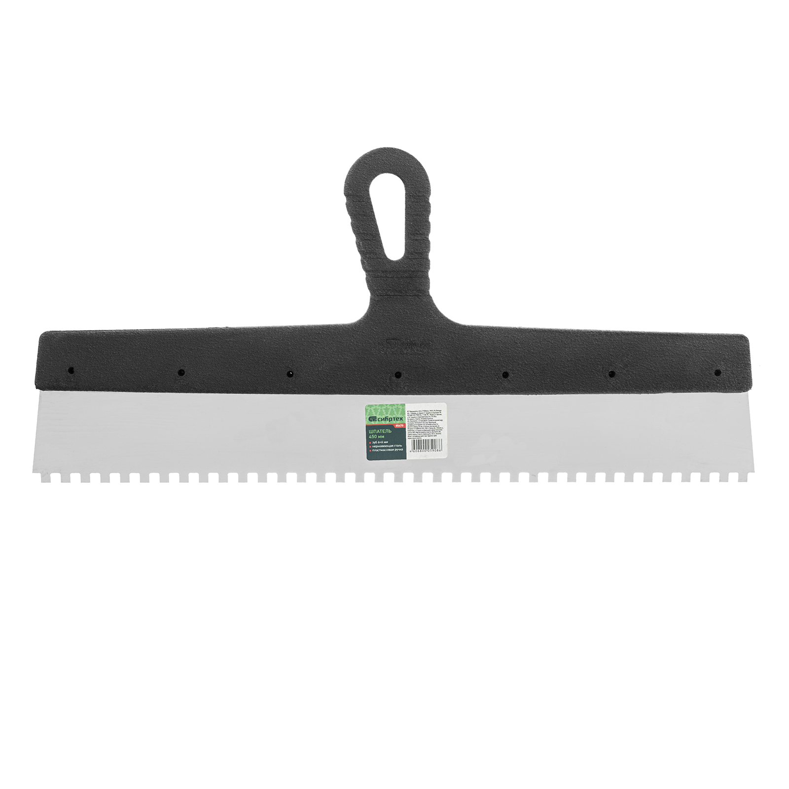 Шпатель из нержавеющей стали, 450 мм, зуб 6 х 6 мм, пластмассовая ручка Сибртех