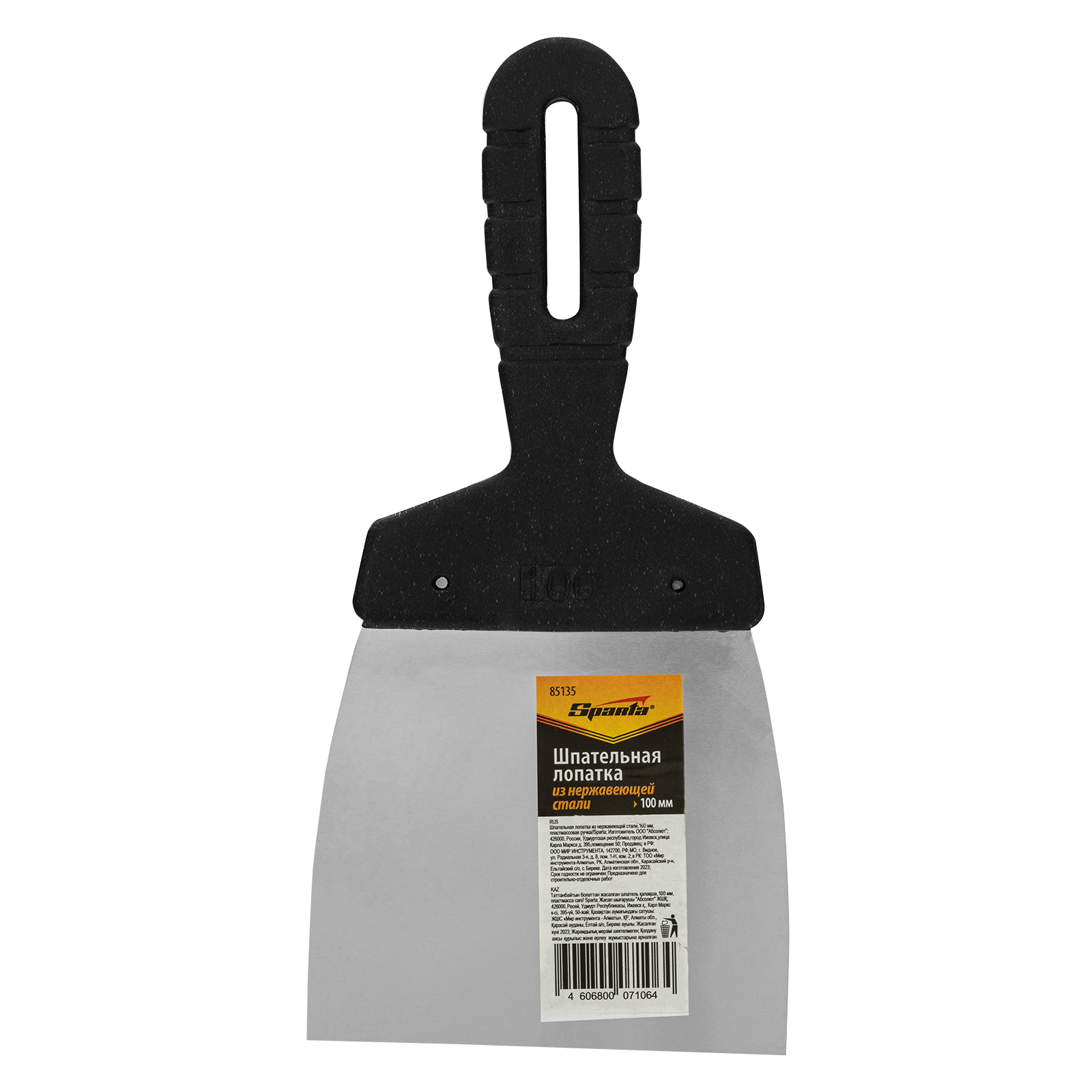 Шпательная лопатка из нержавеющей стали, 100 мм, пластмассовая ручка Sparta