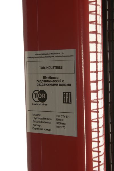 Штабелер гидравлический 1,0 т 3,0 м TOR CTY-EH с раздвижными вилами в Санкт-Петербурге
