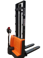 Данный штабелер легко управляется с помощью многофункциональной ручки управления. Отличительной чертой данной модели являются его размеры. Его корпус значительно тоньше, чем у полностью самоходных моделей. Ручка управления перенесена из центральной части в левую, поэтому оператор может с легкостью управлять им стоя сбоку. Это позволяет применять его в более узких проходах, где работа самоходного штабелера невозможна.