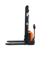 Данный штабелер легко управляется с помощью многофункциональной ручки управления. Отличительной чертой данной модели являются его размеры. Его корпус значительно тоньше, чем у полностью самоходных моделей. Ручка управления перенесена из центральной части в левую, поэтому оператор может с легкостью управлять им стоя сбоку. Это позволяет применять его в более узких проходах, где работа самоходного штабелера невозможна.