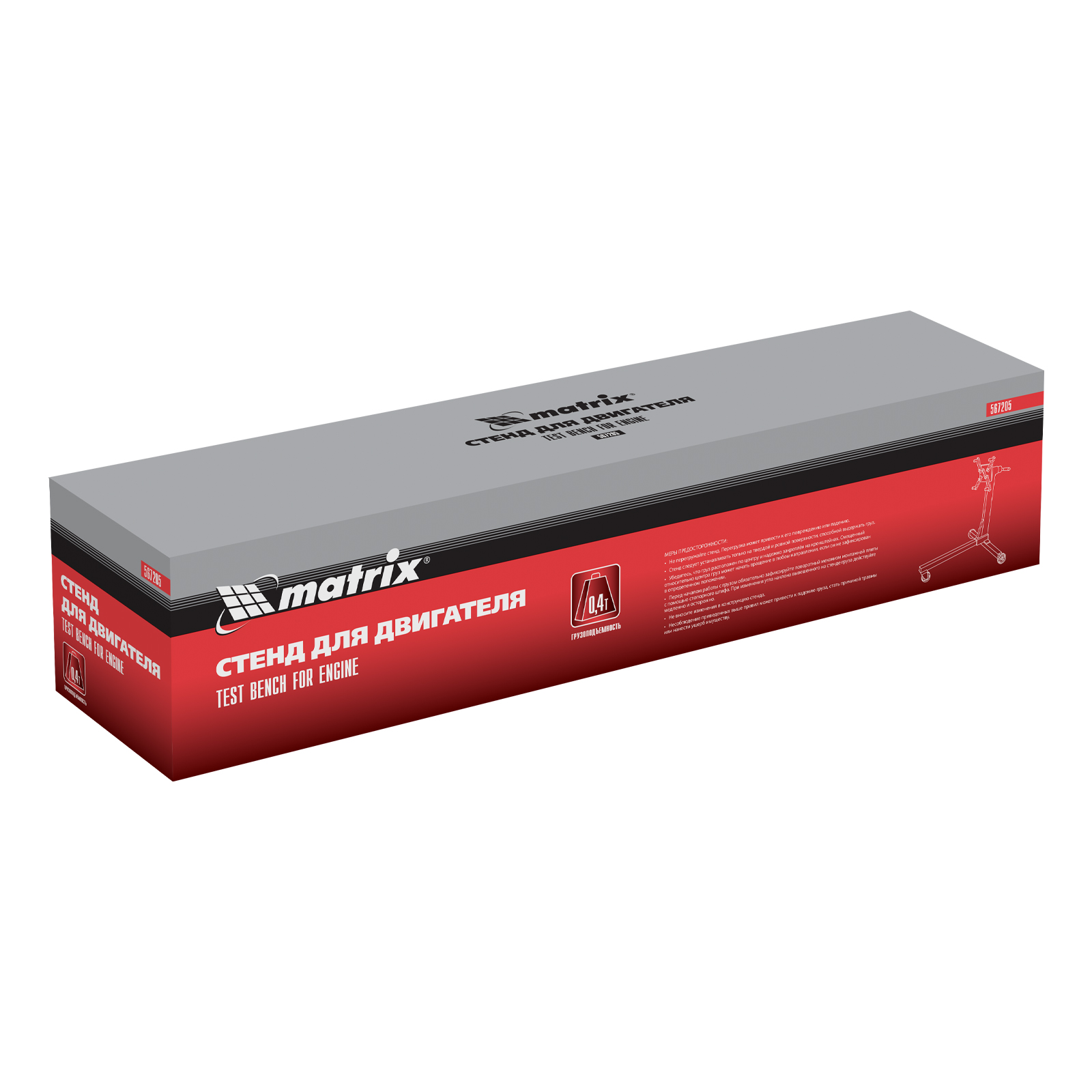 Стенд Matrix 567205 грузоподъемностью 400 кг (1000 Lbs) используется в автомастерских для осуществления ремонта и диагностики двигателя и его транспортировки внутри помещения. Благодаря конструкции с кронштейнами и регулируемыми захватами стенд-кантователь можно использовать для вывешивания практически любых двигателей массой до 400 кг. Для повышения безопасности работы рекомендуется использовать стенд со стойкой и краном.