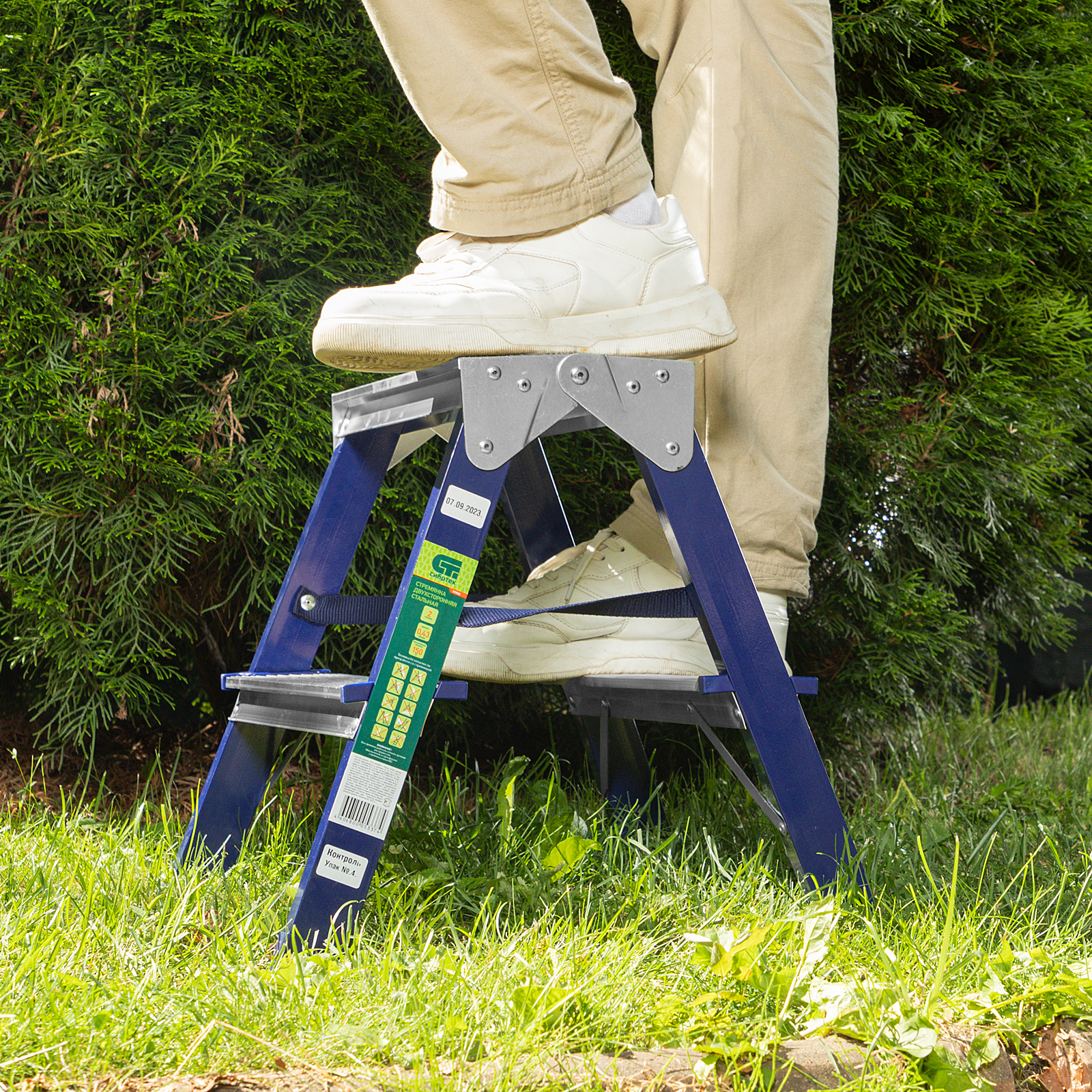 Стремянка двусторонняя 2 ступени, стальная, Сибртех