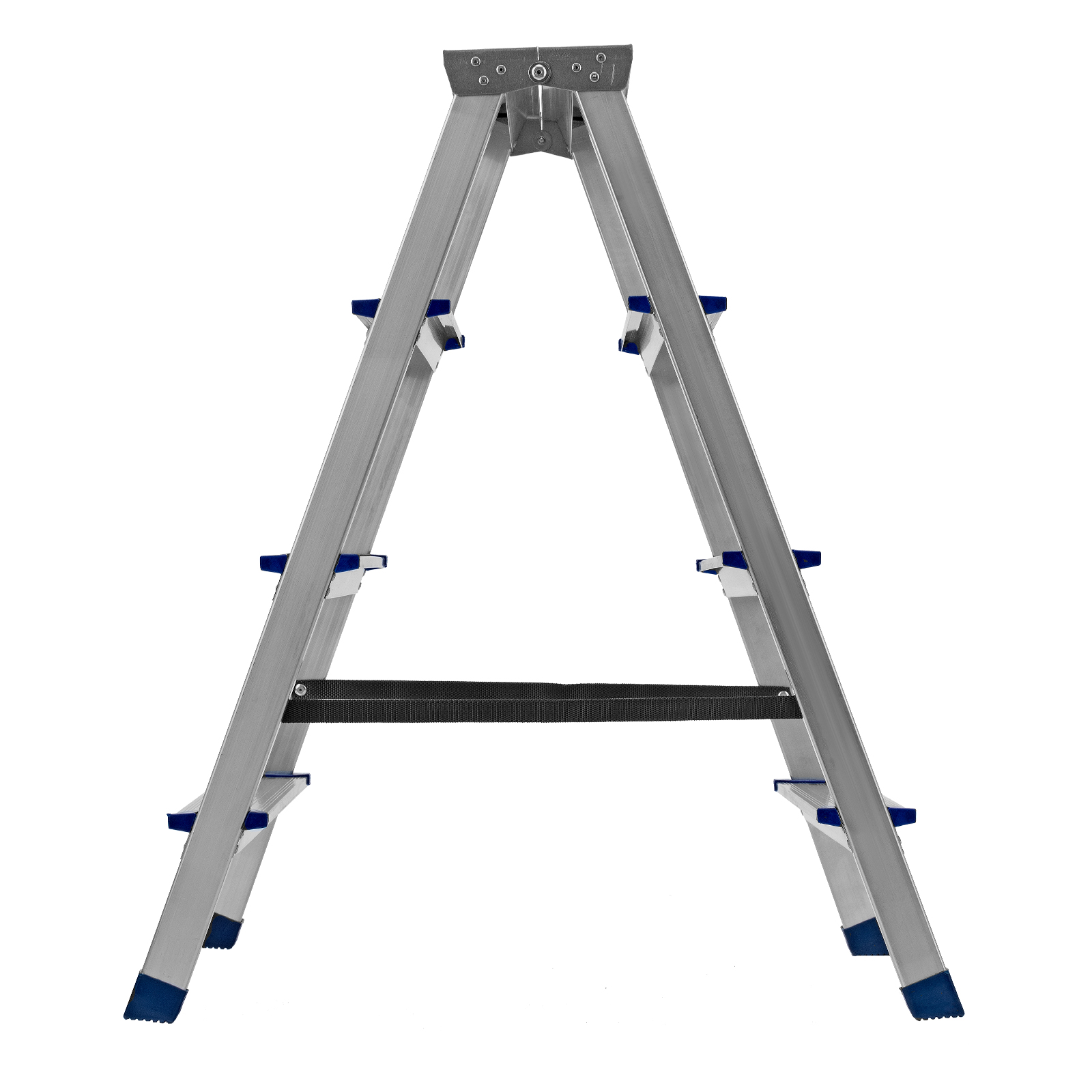 - Продуманная конструкция — нейлоновые страховочные стяжки повышают надежность фиксации стремянки в рабочем положении.