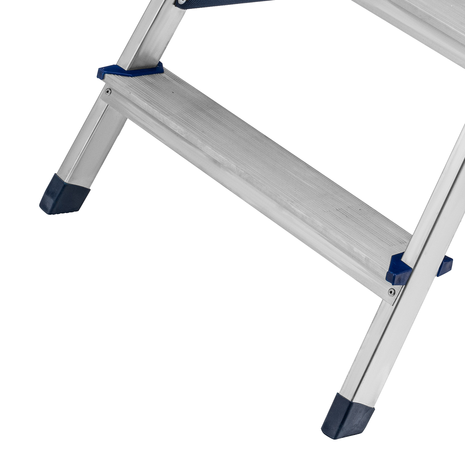 - Долговечность — стремянка выполнена из легкого, но прочного алюминия, устойчивого к коррозии.