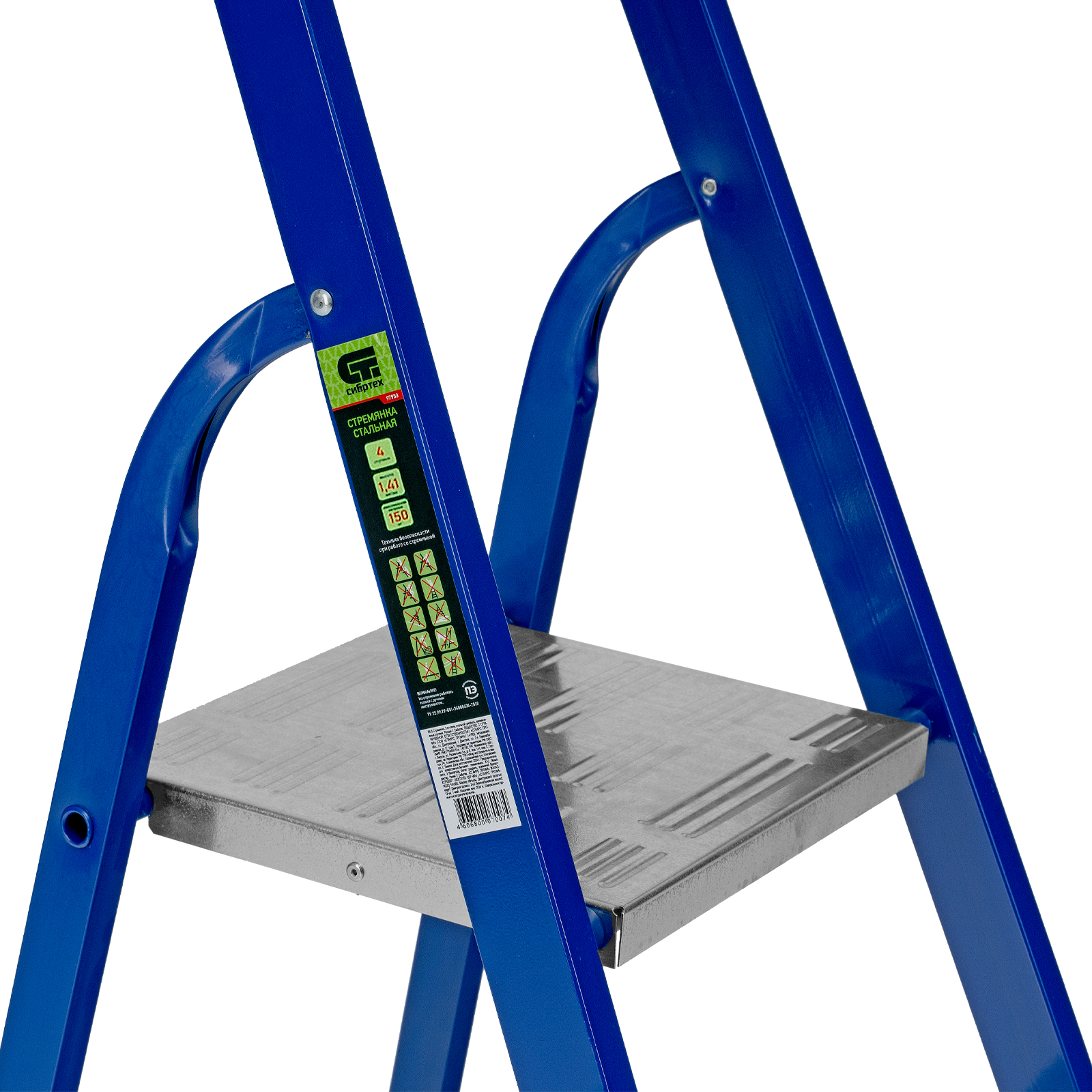 Стремянка, 4 ступени, стальной профиль, алюминиевые ступени Сибртех
