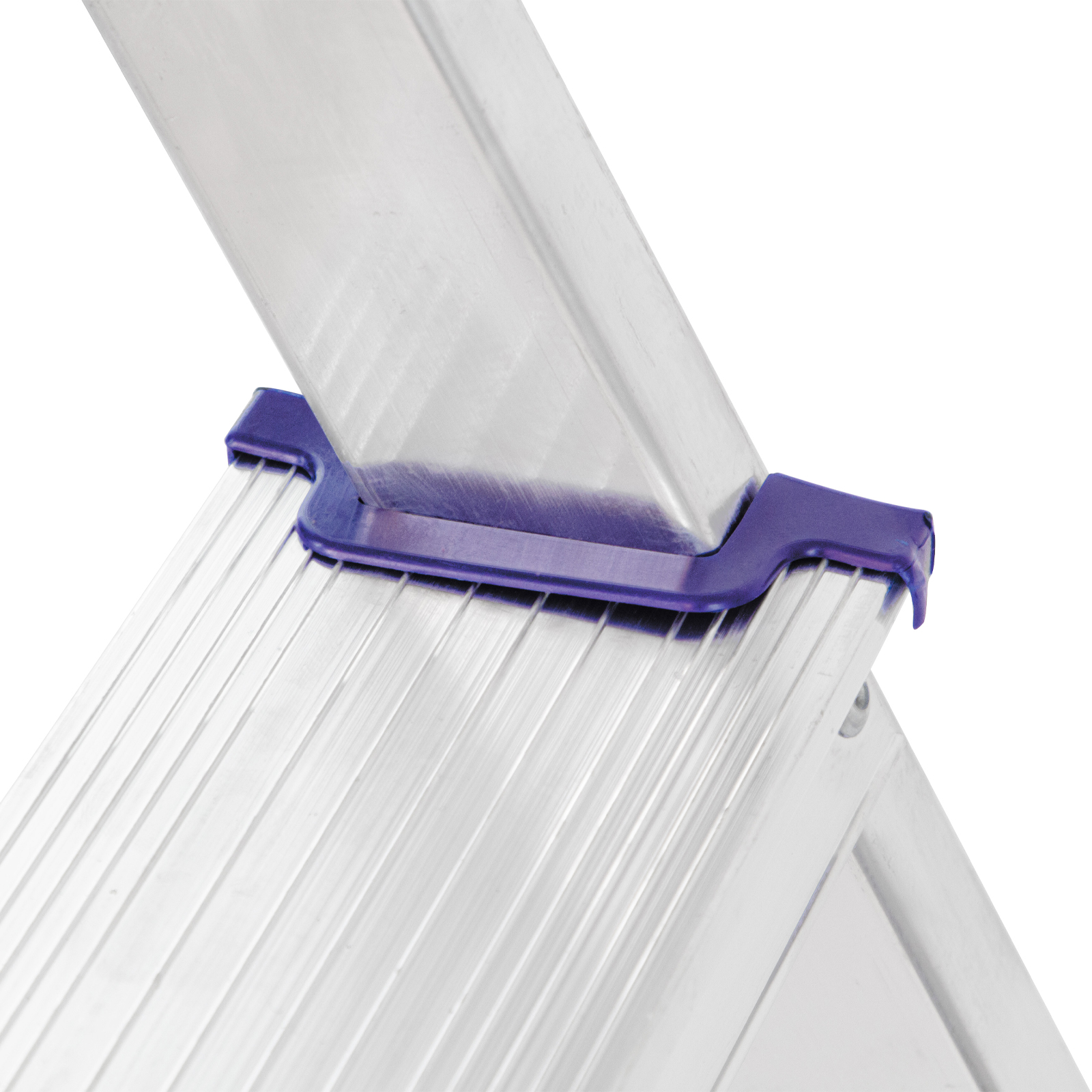 - Надежность — рама из прямоугольного алюминиевого профиля выдерживает нагрузку до 150 кг, широкие ступени закреплены заклепками, страховочные стяжки повышают прочность конструкции.