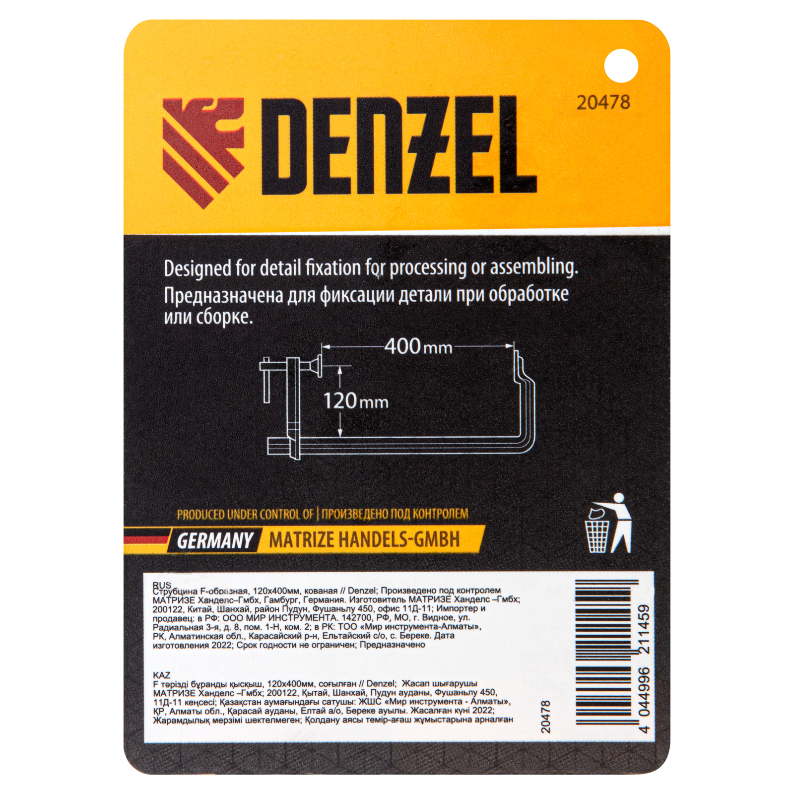 Струбцина F-образная, 120x400мм, кованая Denzel