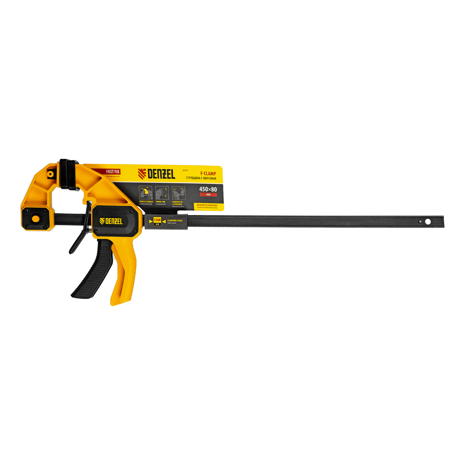 Струбцина F-образная, быстрозажимная, 450 х 80 мм, усиленный нейлоновый корпус Denzel в Санкт-Петербурге