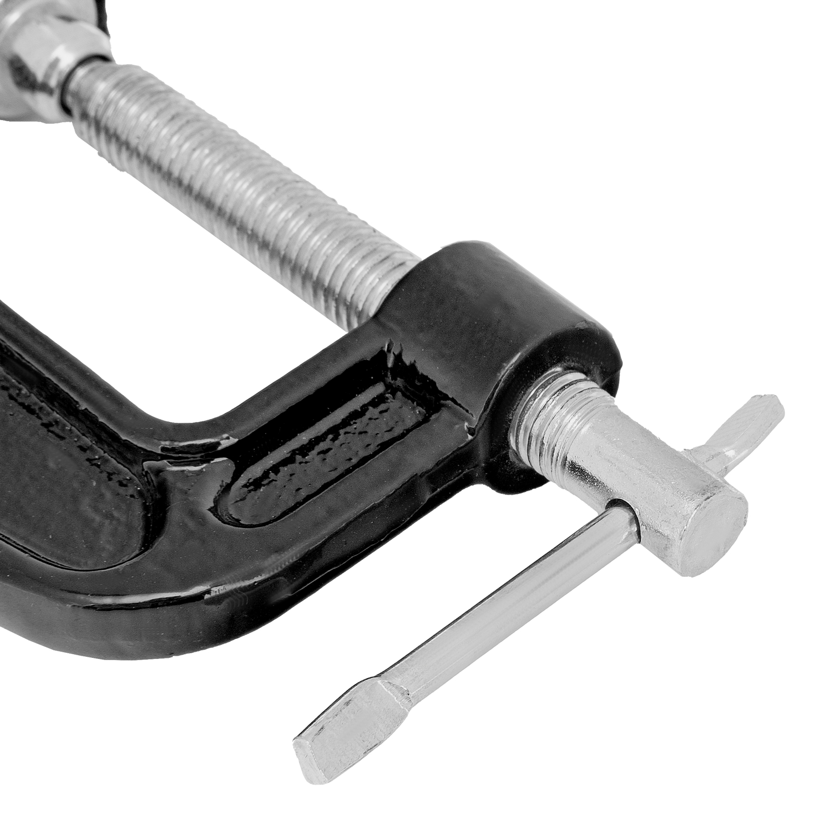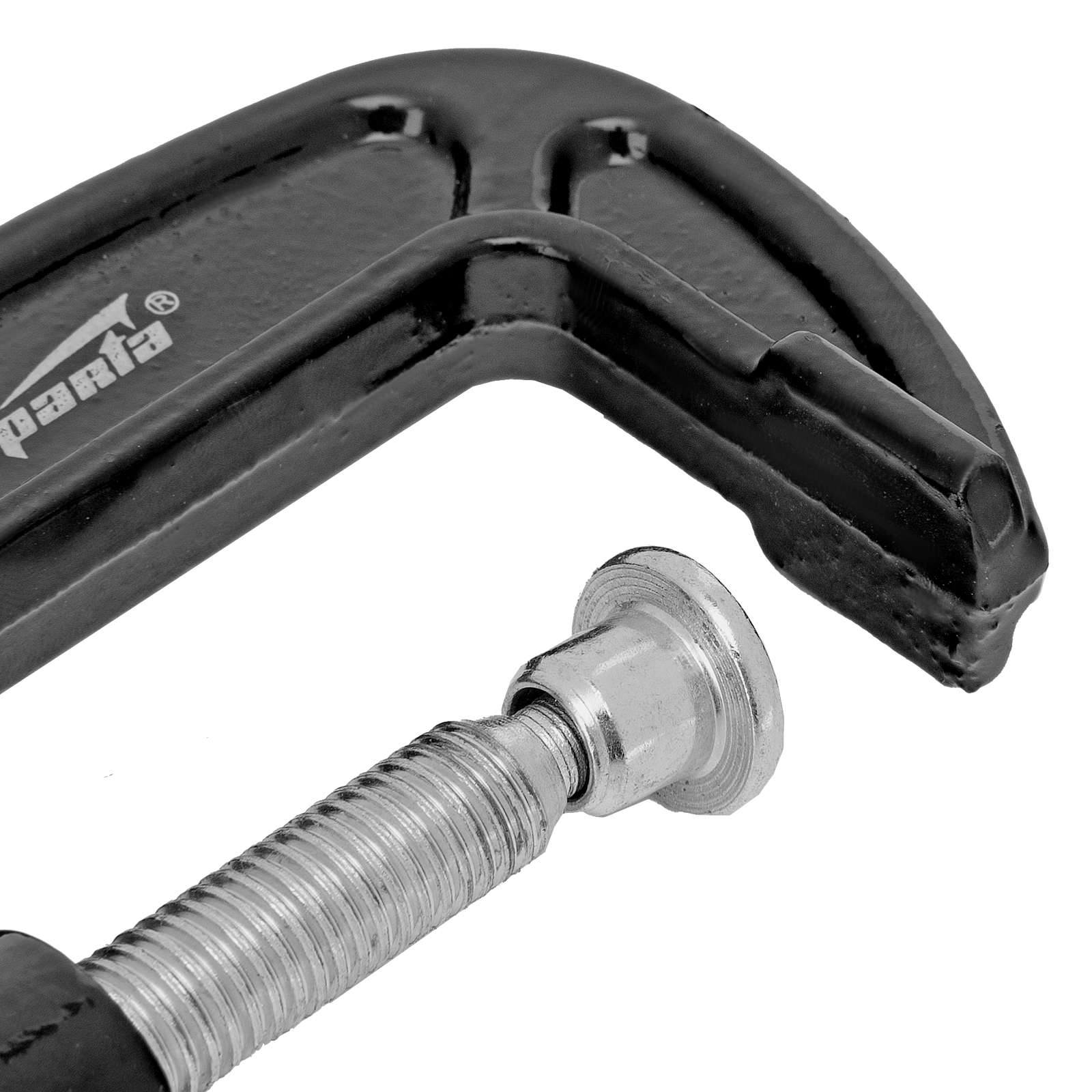 G-образная струбцина Sparta 206505 с шириной зажима 50 мм надежно фиксирует различные детали для дальнейшего склеивания, сверления, пиления, шлифования или сварки. Винт с воротком и крупной червячной резьбой позволяет зажимать детали плавно и со значительным усилием. Струбцина будет полезна домашнему мастеру.