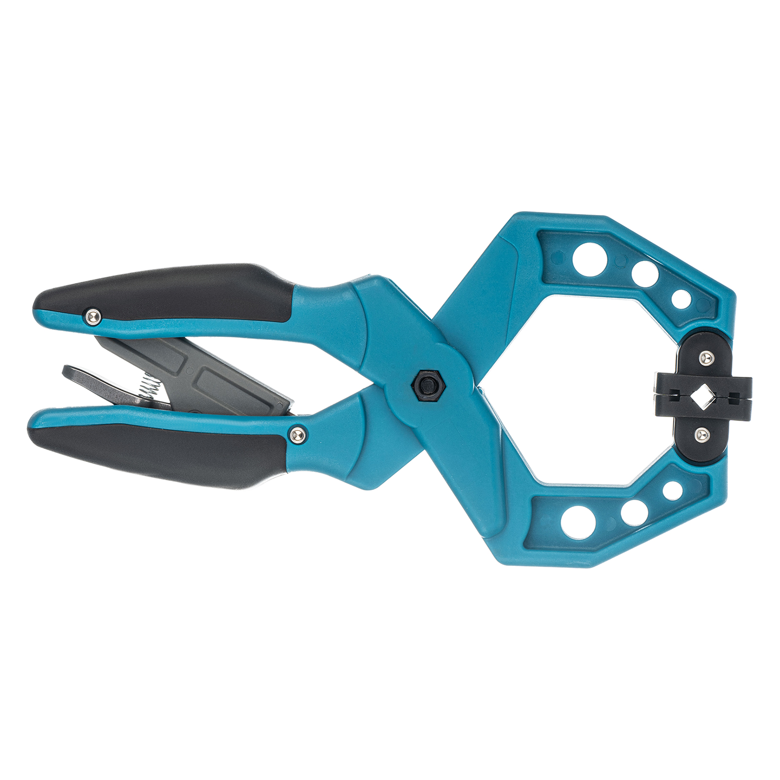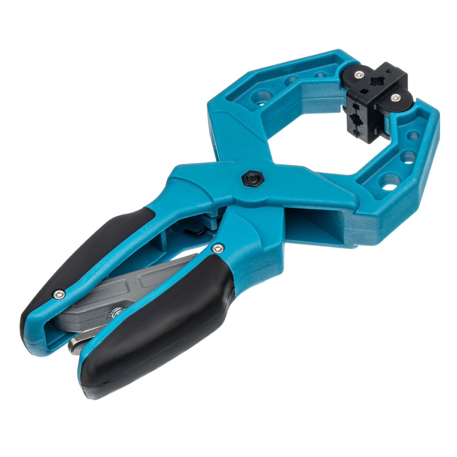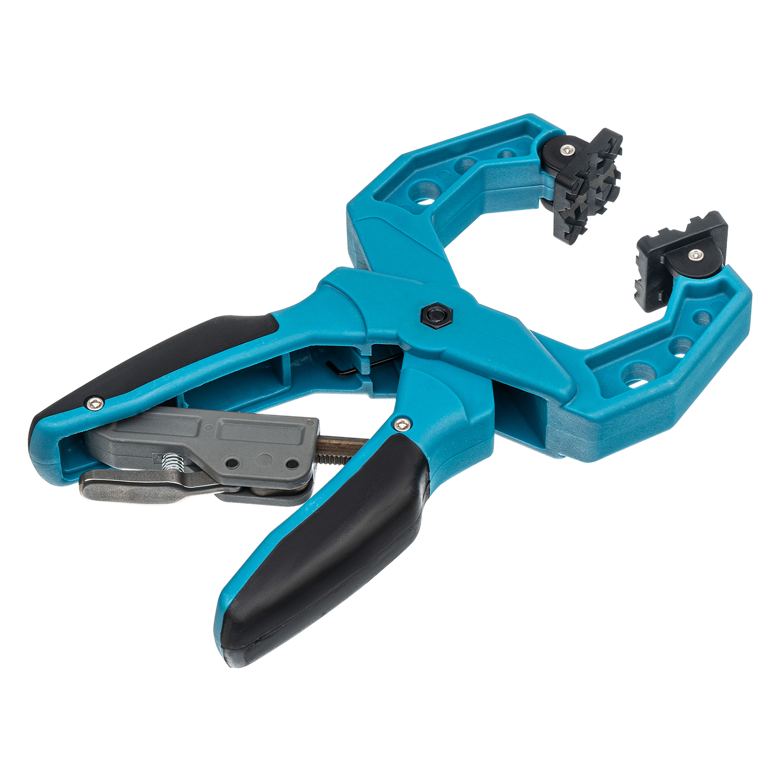 - Благодаря шарнирному креплению прижимных насадок сжимаемые детали можно устанавливать под разными углами.