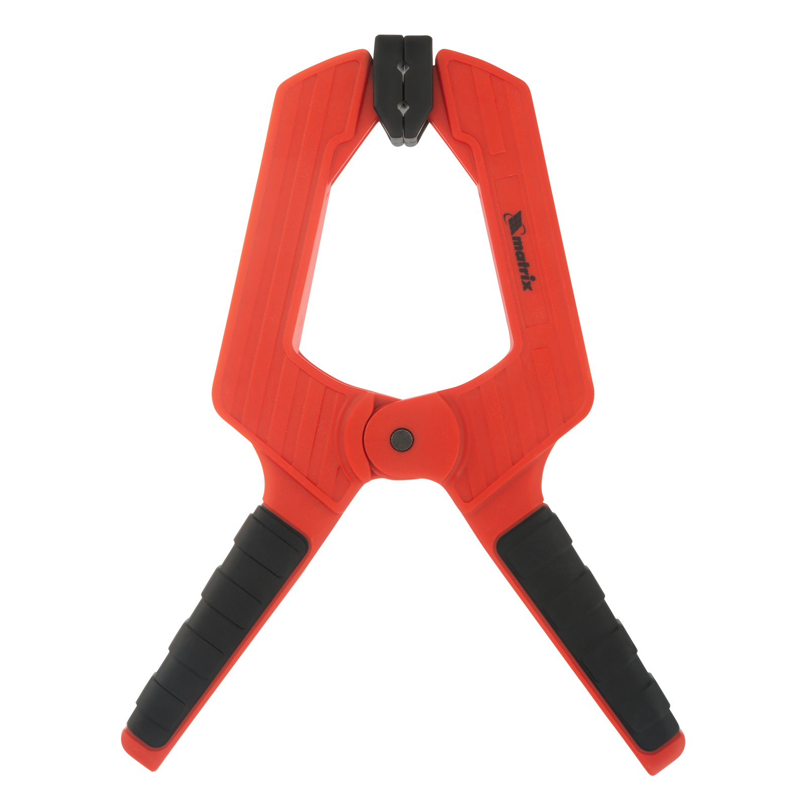 Струбцина клещеобразная Matrix 20794 с усиленной пружиной, в пластиковом корпусе, с двухкомпонентными рукоятками, способна зажимать и крепко удерживать детали толщиной до 4" (100 мм). Пригодится для склеивания или разметки заготовок. Струбцина пригодится в столярной мастерской, дома или на даче.