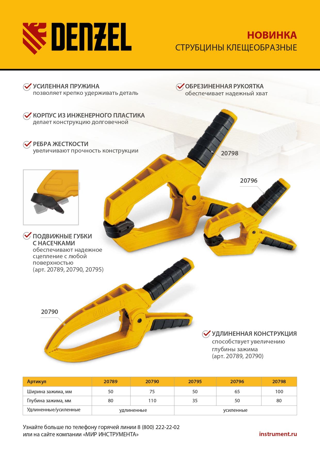 Струбцина клещеобразная, усиленная 50 х 35 мм, двухкомпонентные рукоятки Denzel в Санкт-Петербурге