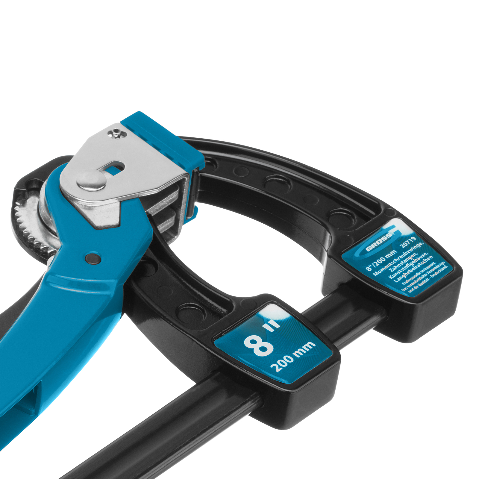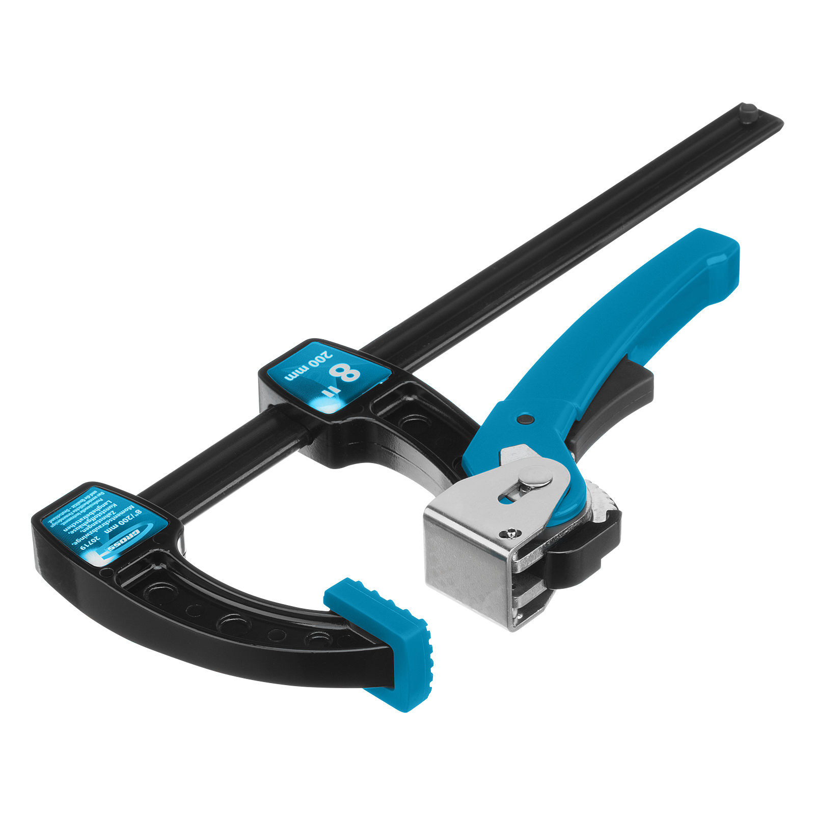 Струбцина реечная быстрозажимная 8, металлический корпус, рычажный храповой механизм, 200 мм Gross