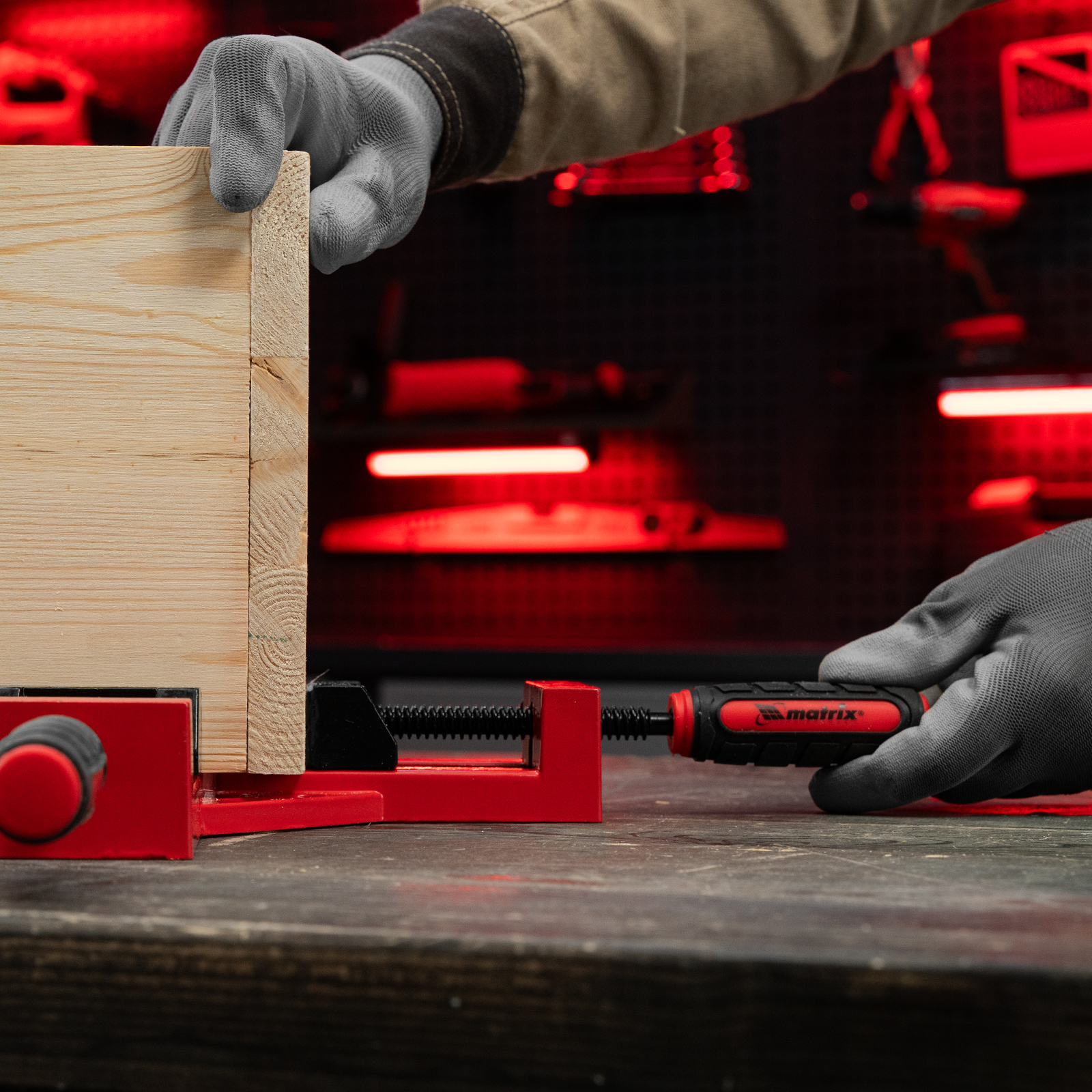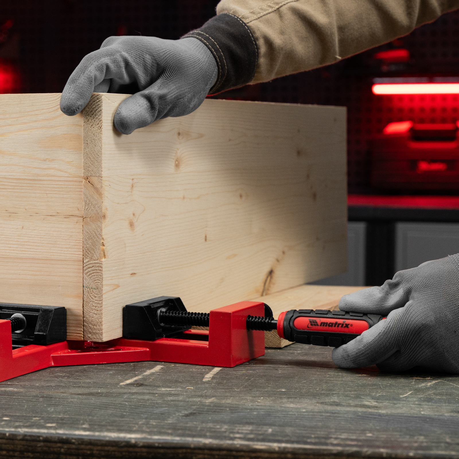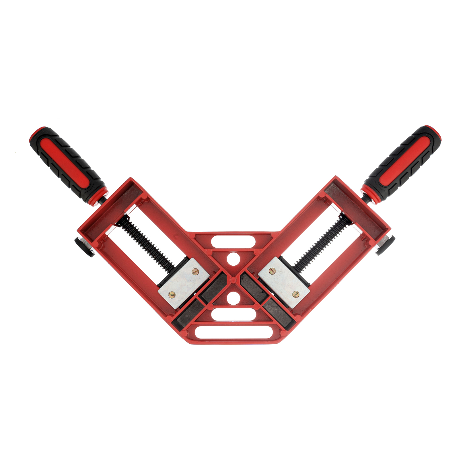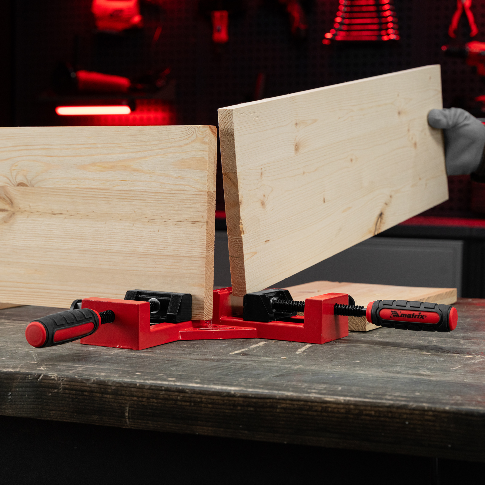 Угловая быстрозажимная струбцина Matrix 20322 с шириной зажима 65 х 65 мм, с двухкомпонентными обрезиненными рукоятками, предназначена для быстрой и надежной фиксации заготовок перпендикулярно друг другу. Рычажно-осевой механизм не требует особых усилий от пользователя. Инструмент позволяет точно выдерживать угол в 90°, обеспечивая высокое качество работ. Струбцину используют для сборки мебели и других конструкций.