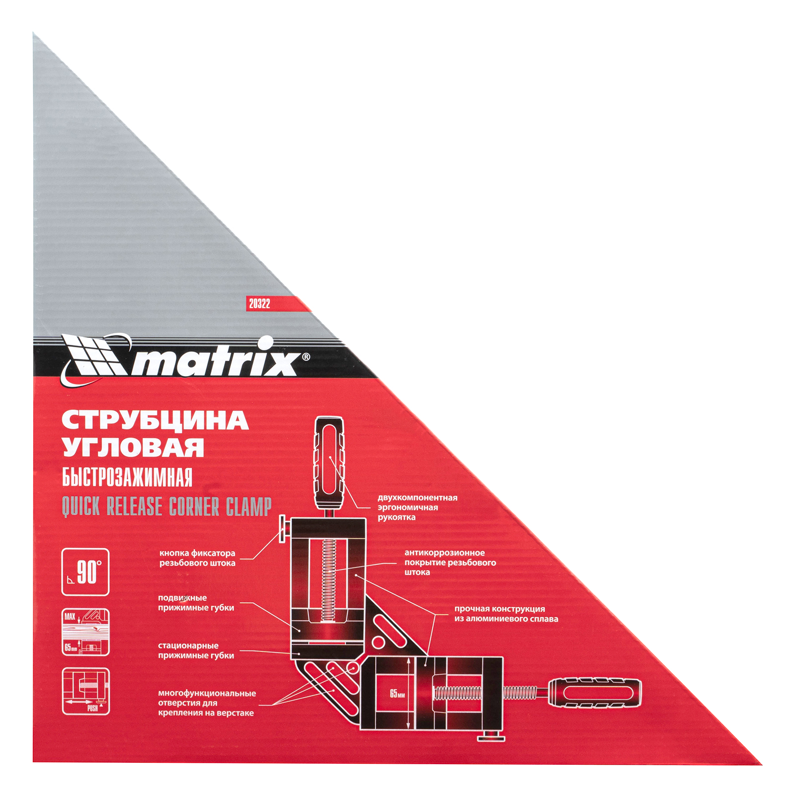 Струбцина угловая, быстрозажимная, 65/65 мм, двухкомпонентные обрезиненные рукоятки Matrix
