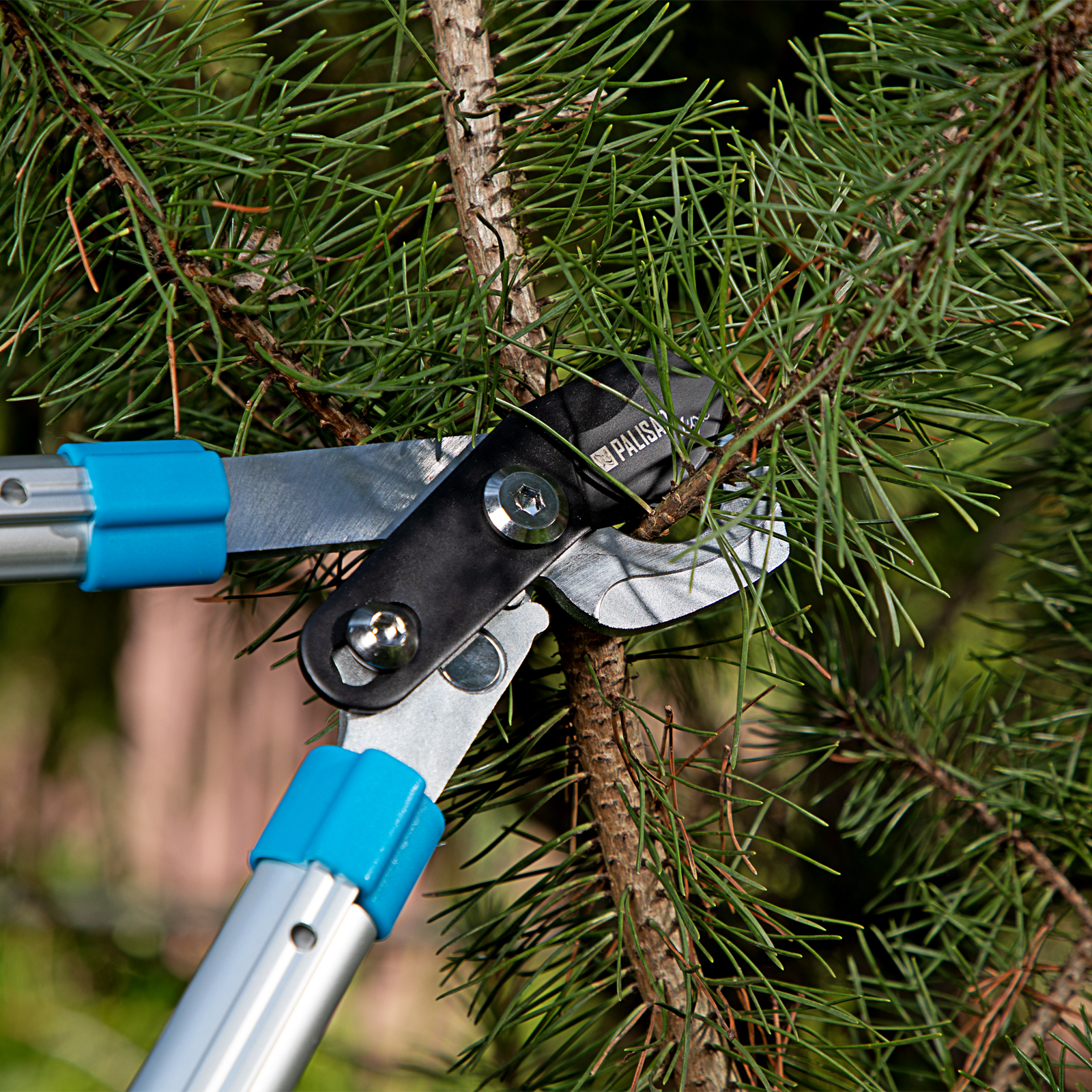 • Функциональность — благодаря телескопическим ручкам сучкорез удобен для срезания высоко растущих веток.