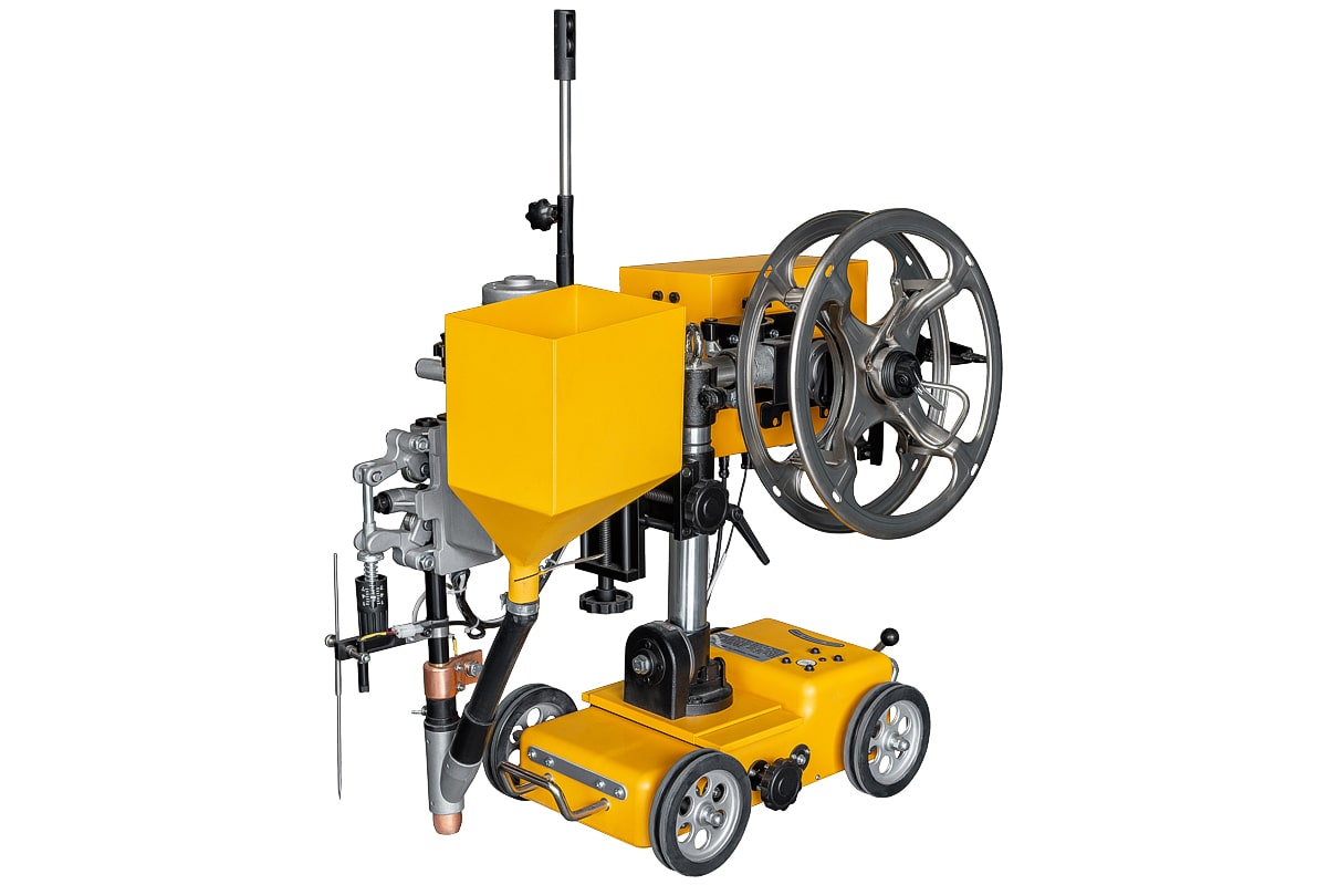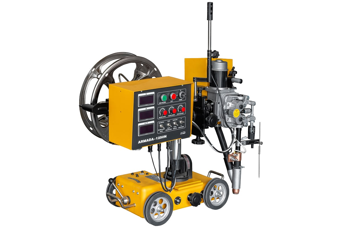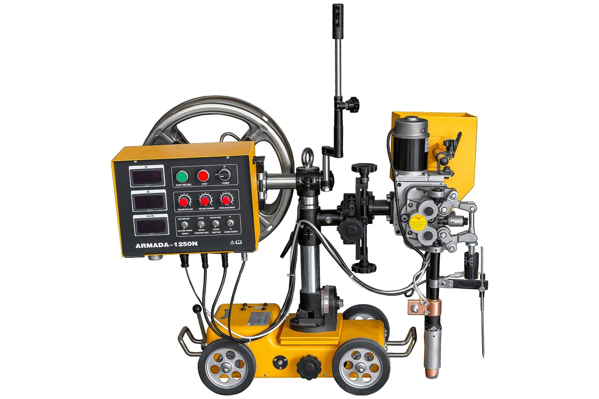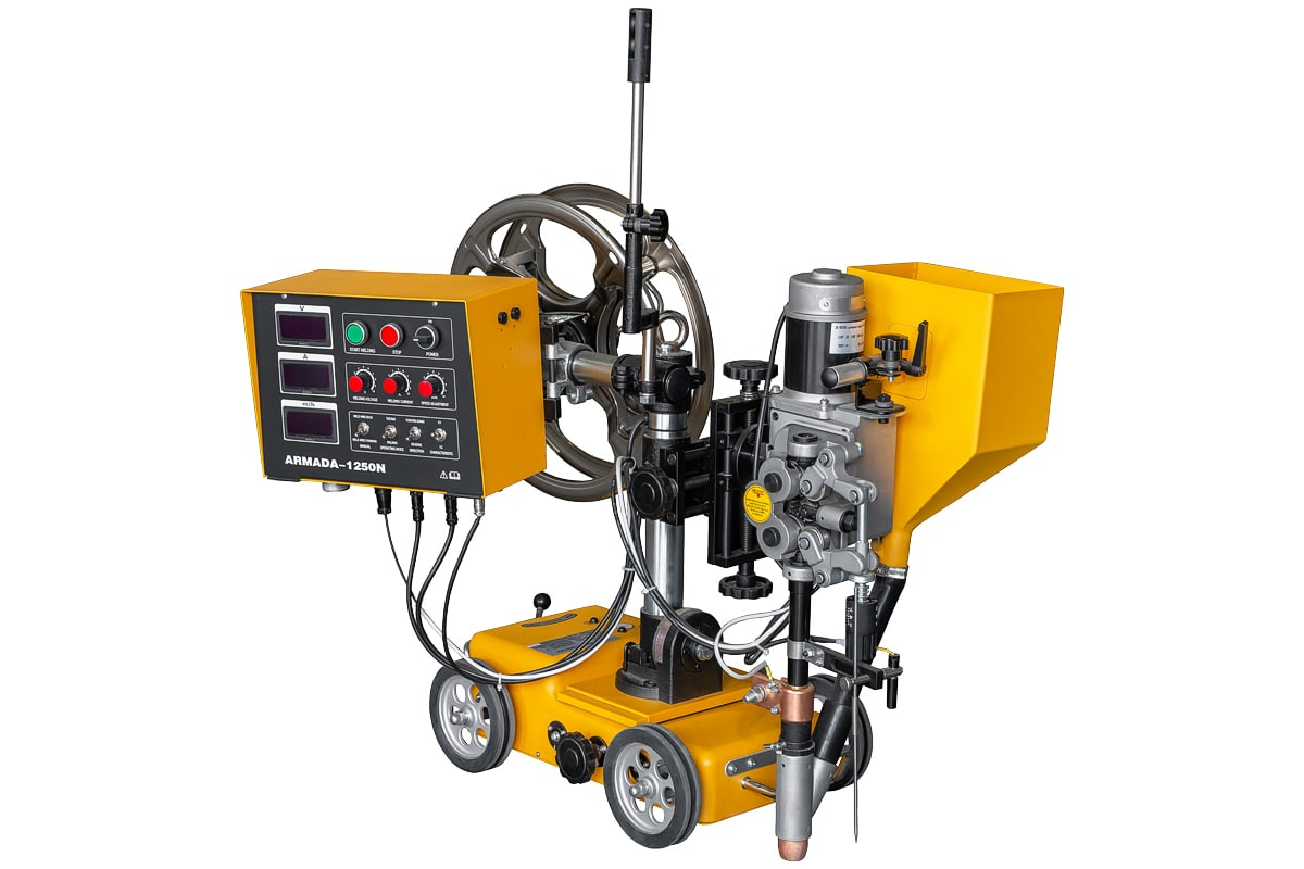 Промышленный многофункциональный сварочный аппарат для автоматической сварки под флюсом (SAW) с функцией ручной дуговой сварки покрытым электродом (ММА) и воздушно-дуговой строжки (Googing). Источник сварочного тока в составе аппарата обеспечивает сварочные процессы с жесткой ВАХ «CV» (Constant Voltage) и падающей ВАХ «СС» (Constant Current) при 100% ПВ с током сварки до 1 250 А. Возможно выполнение сварных изделий из всех видов стали с толщинами от 3 до 350 мм