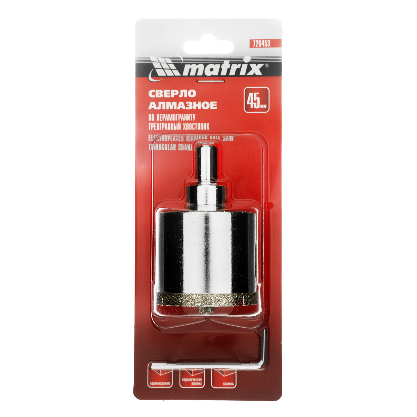 Сверло алмазное по керамограниту, 45 х 67 мм, трехгранный хвостовик Matrix