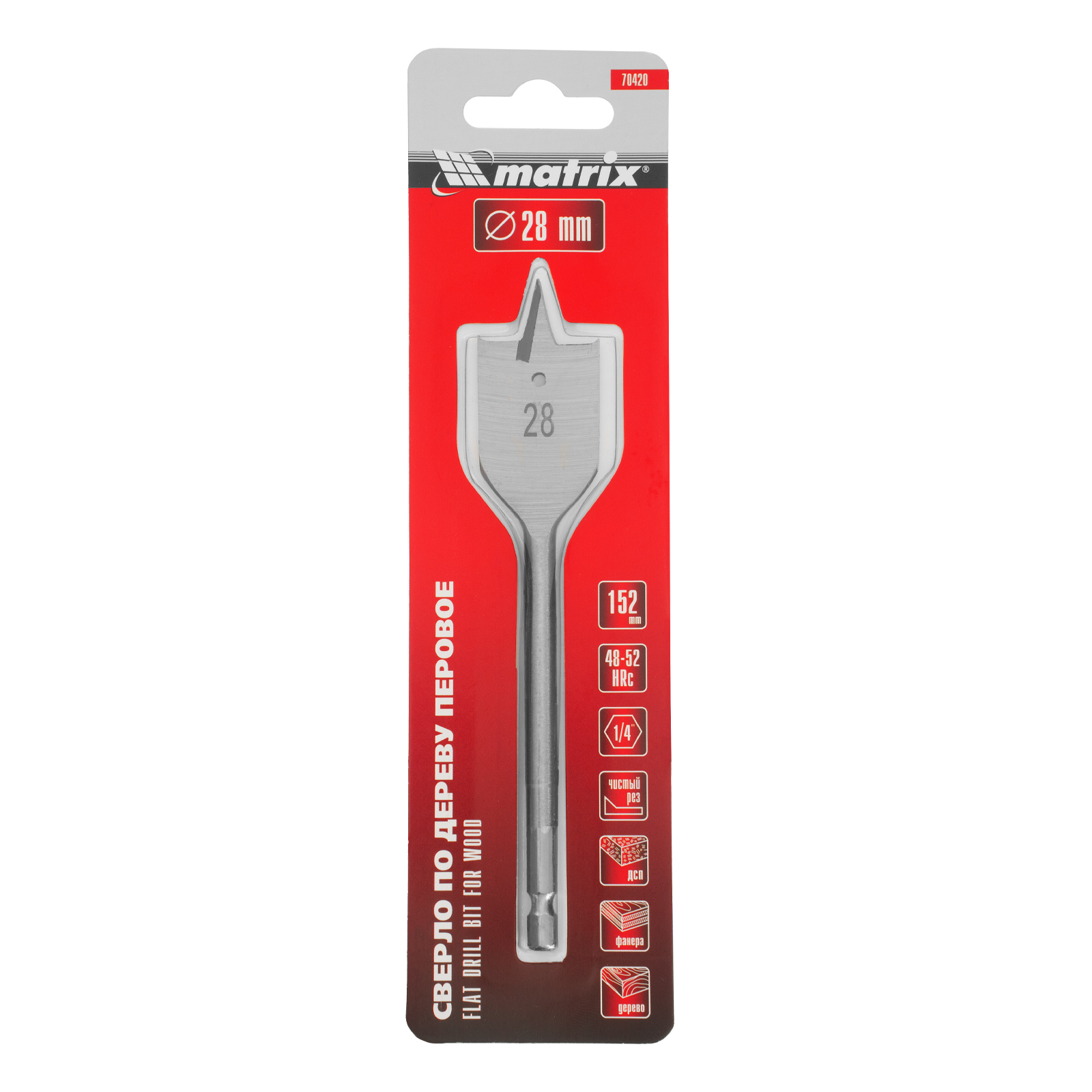 Сверло по дереву перовое, 28 мм, шестигранный хвостовик Matrix