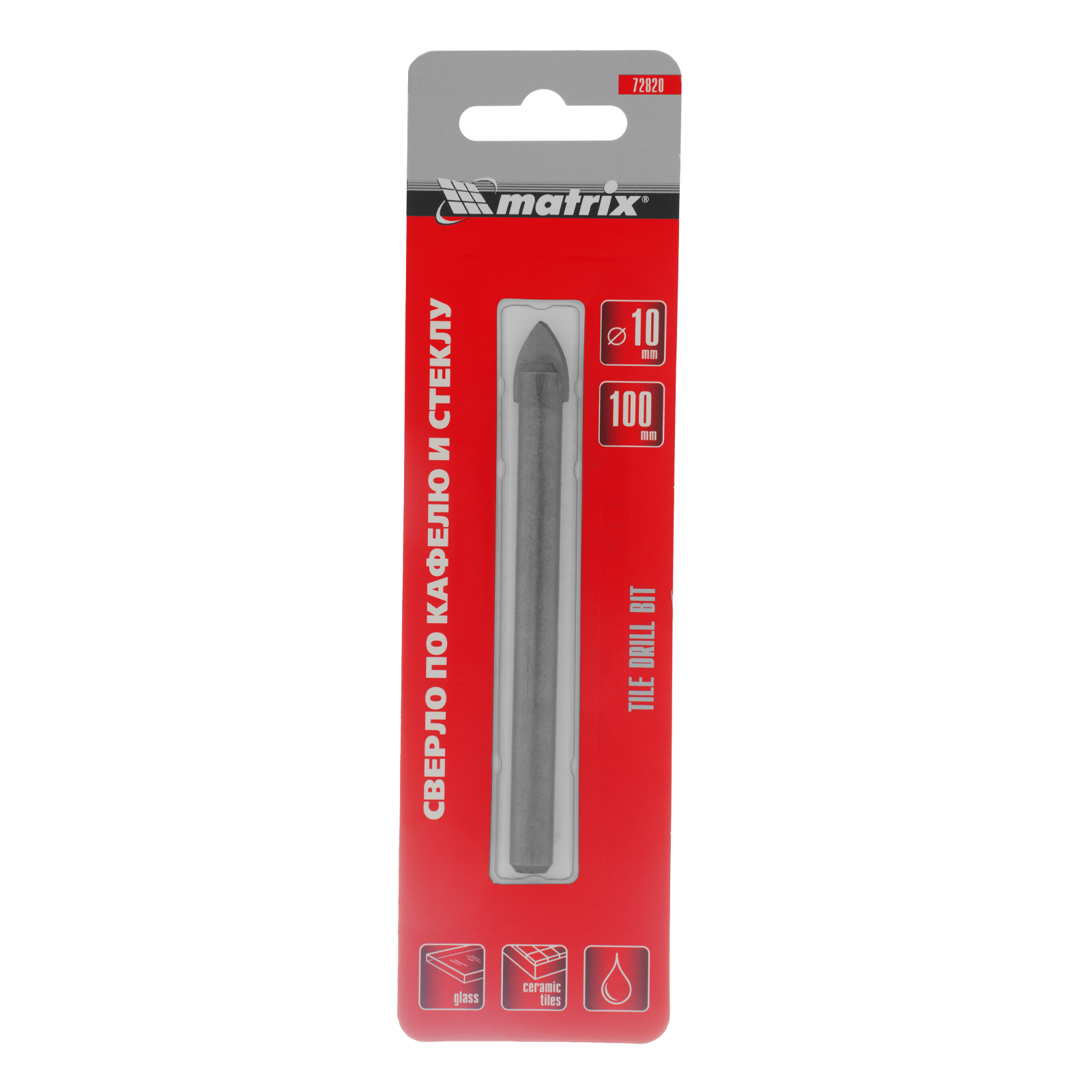 Сверло по керамической плитке, 10 мм, цилиндрический хвостовик Matrix