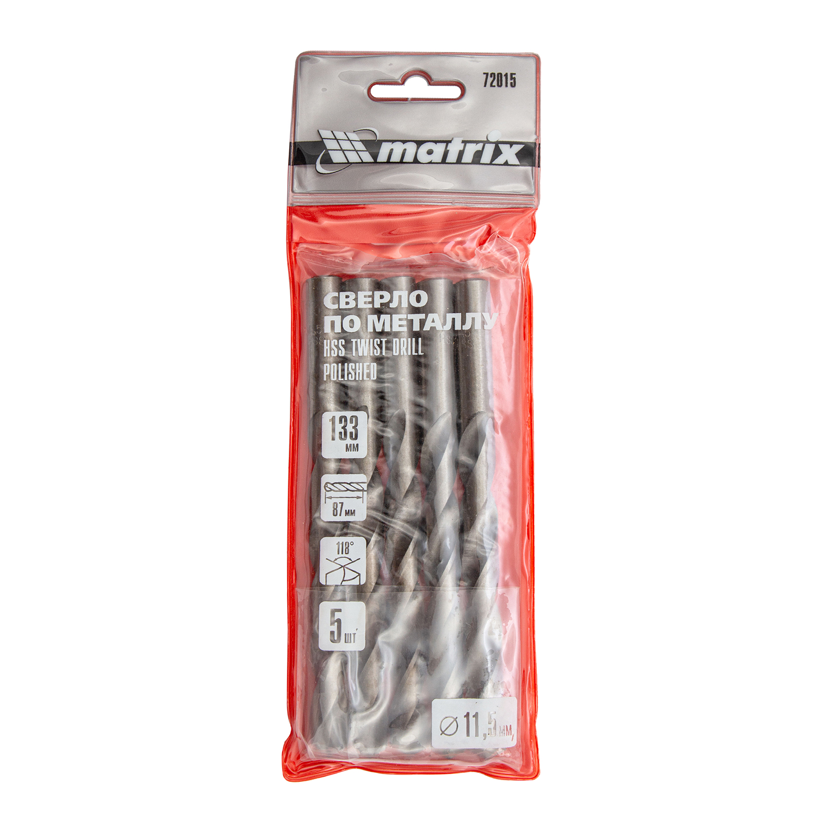 Сверло по металлу, 11.5 мм, полированное, HSS, 5 шт, цилиндрический хвостовик Matrix