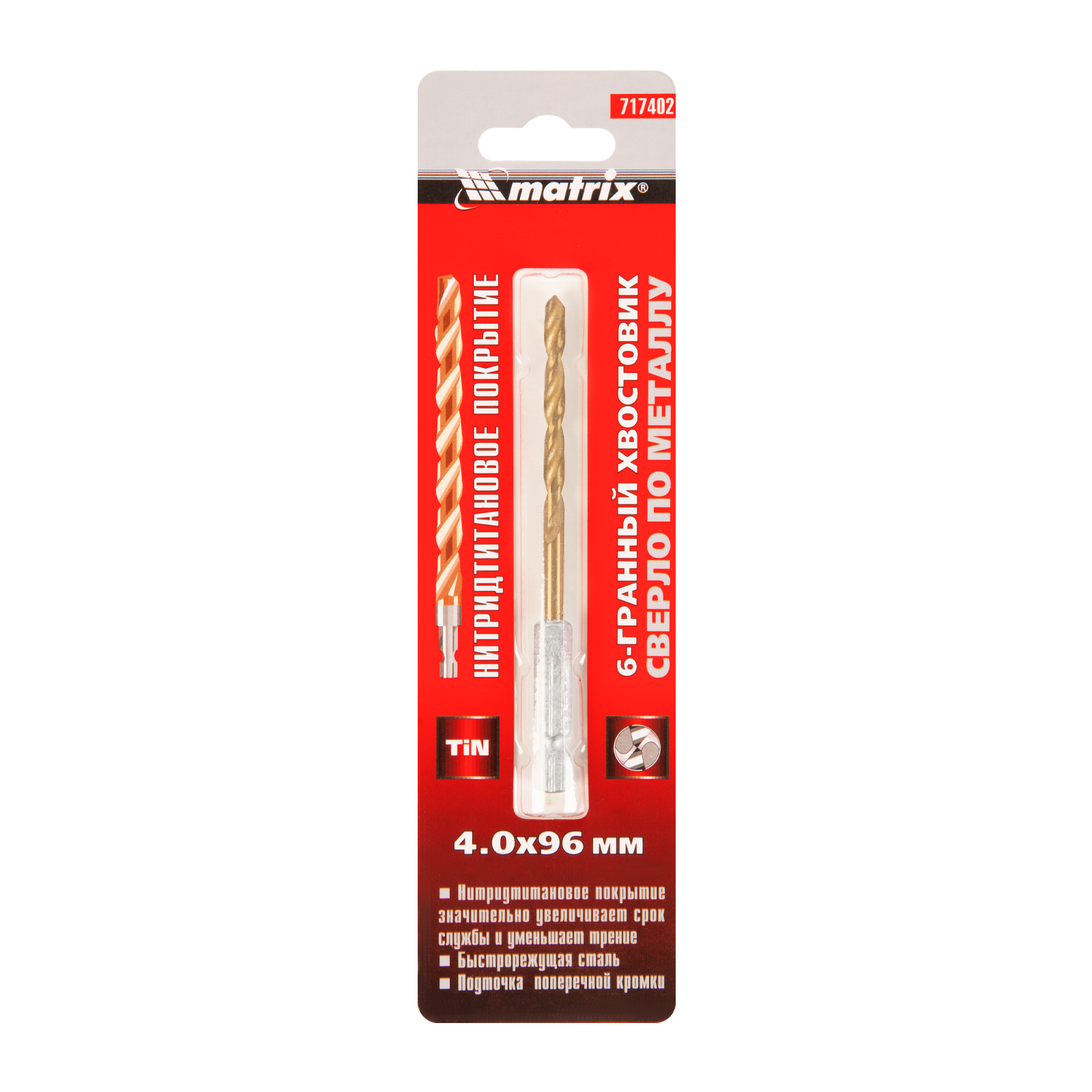 Сверло по металлу Matrix 717402 диаметром 4 мм, из стали HSS, с нитридтитановым покрытием и 6-гранным хвостовиком, предназначено для получения отверстий в черном металле, стали, чугуне и твердой бронзе. Устанавливается в патрон дрели.