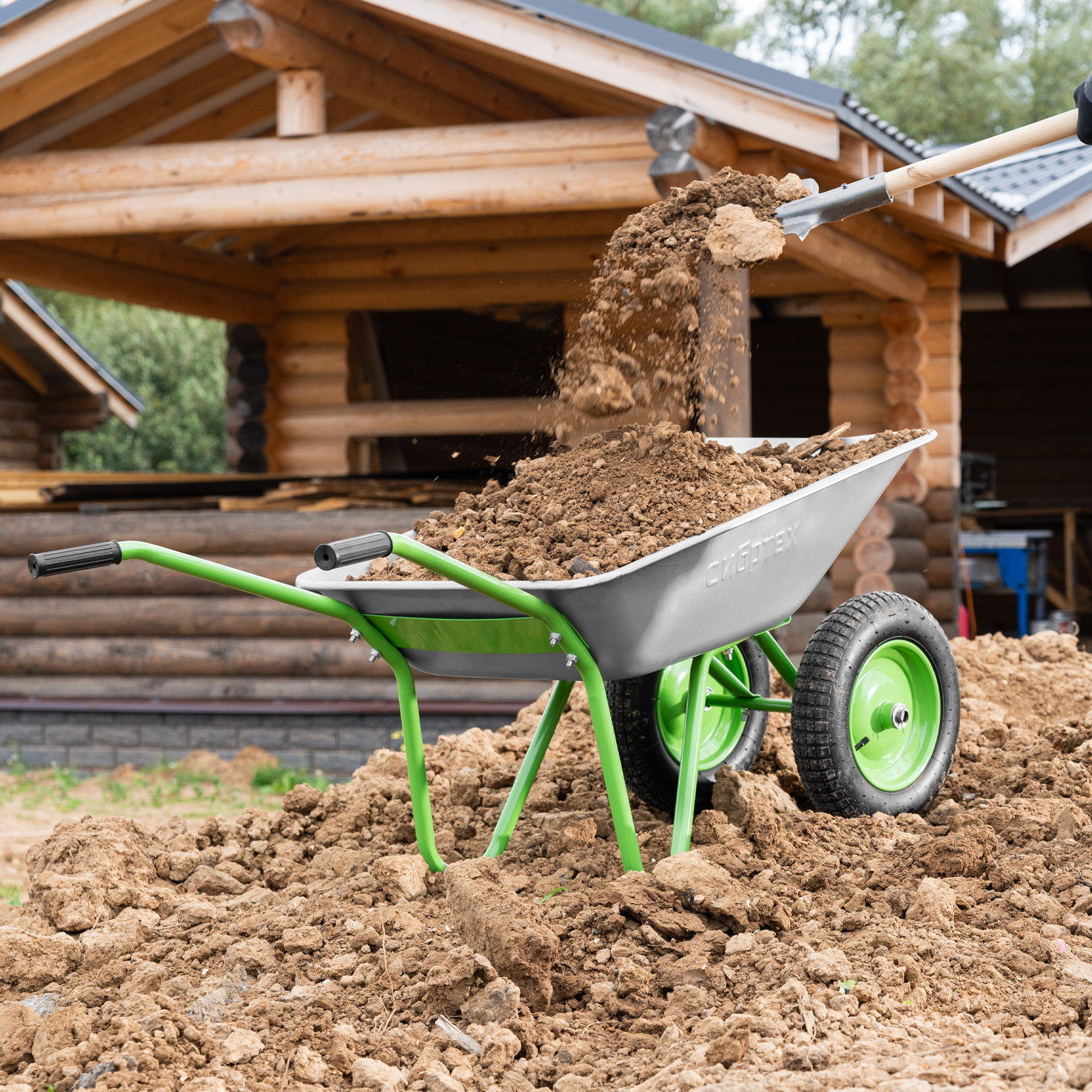 Двухколесная садовая тачка Сибртех 689135 грузоподъемностью 120 кг, с объемом кузова 65 л, служит для транспортировки легких грузов при выполнении садовых и сельскохозяйственных работ. С ее помощью можно привести в порядок территорию и убрать листья, собрать урожай и выполнить другие работы на загородном участке. Два колеса обеспечивают высокую грузоподъемность, а также устойчивость во время движения по прямой и на поворотах. Вес груза распределяется равномерно, поэтому тачка не проваливается даже в рыхлый грунт.