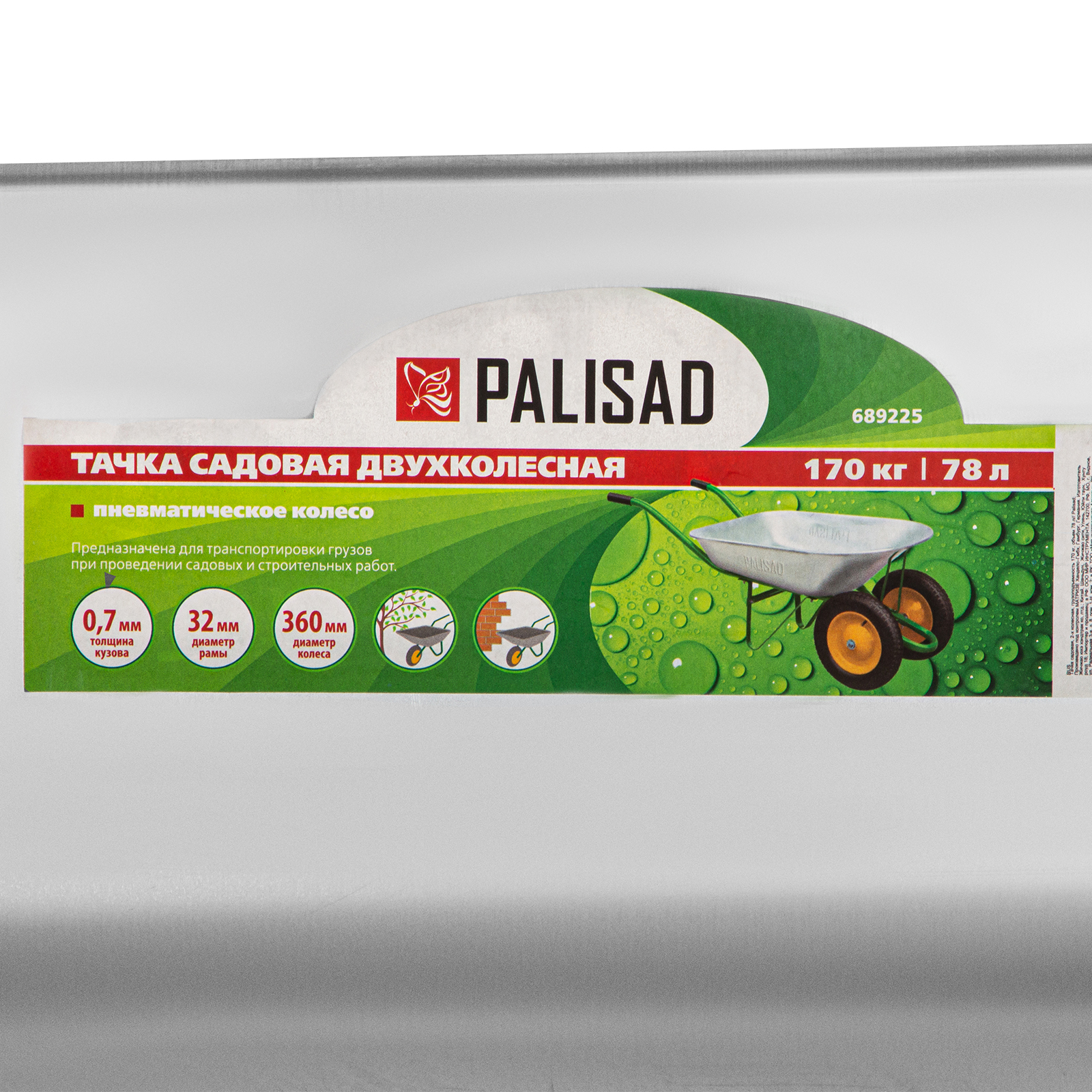 Тачка садовая, два колеса, грузоподъемность 170 кг, объем 78 л Palisad