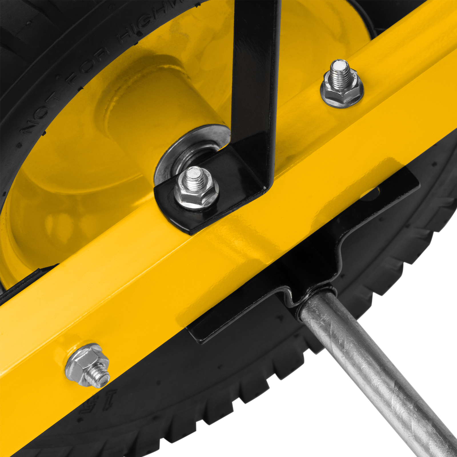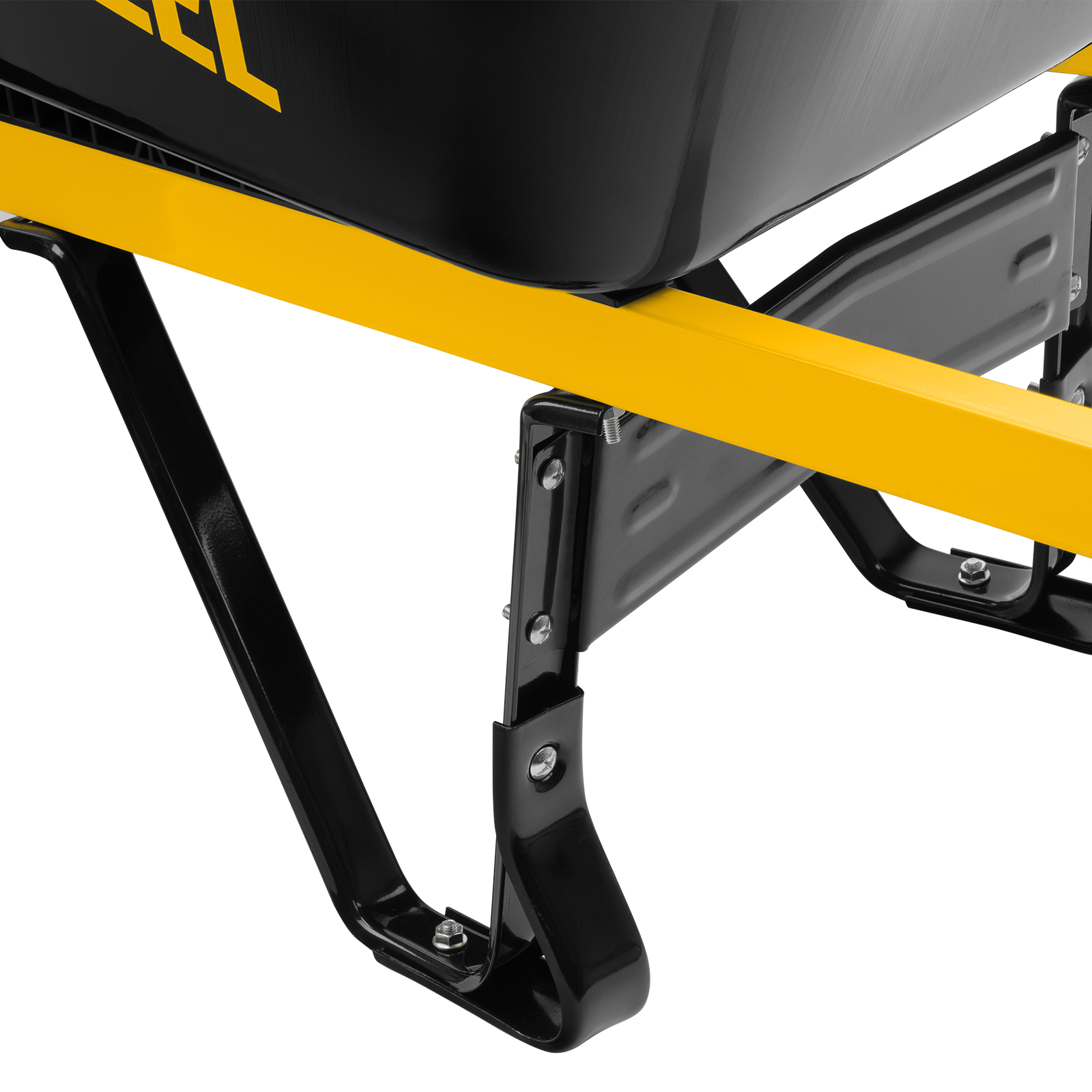 - Устойчивость — широкие пневматические колеса с грунтозацепом и мощная рама с подпятниками предотвращают проваливание тачки в грунт.