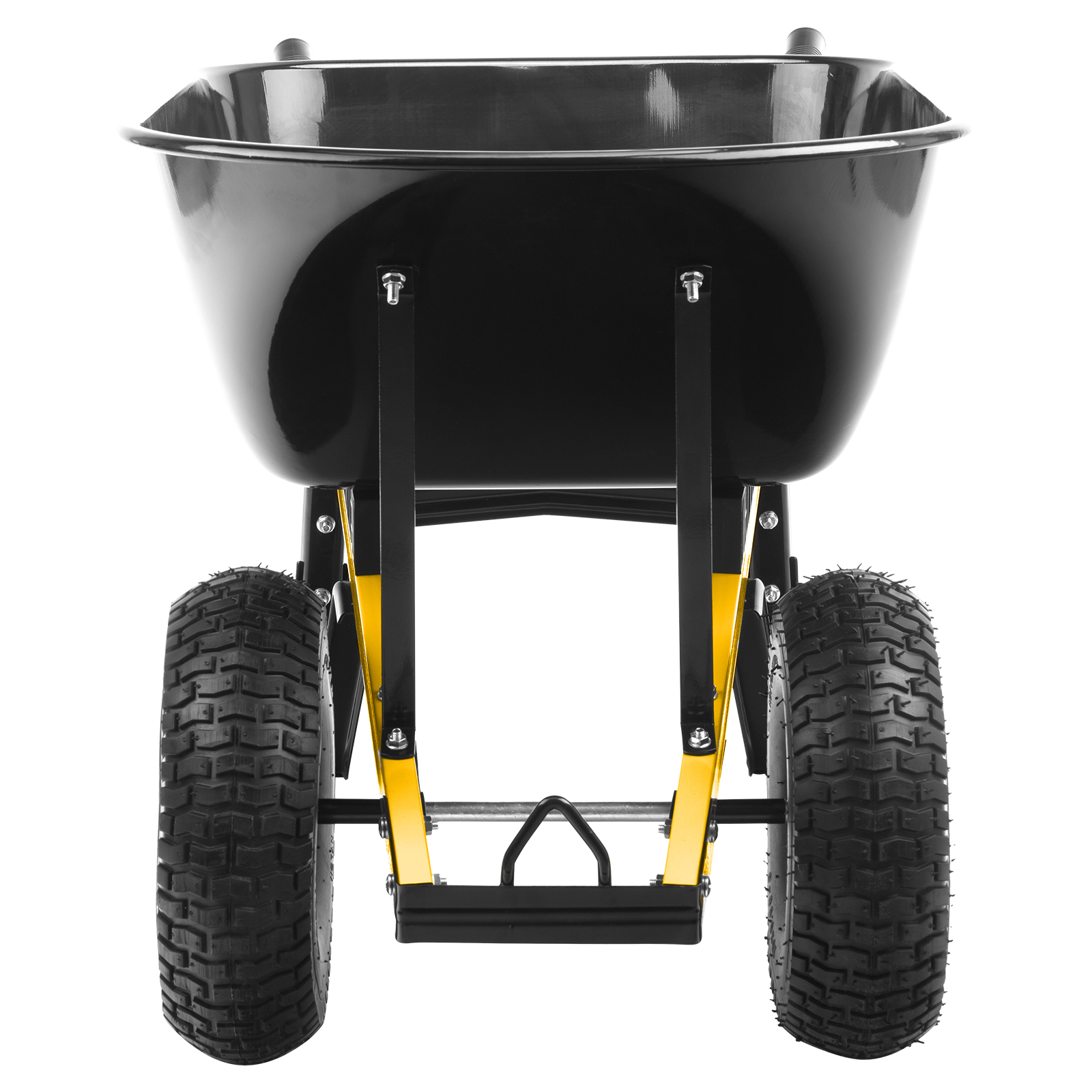 - Возможность фронтальной разгрузки — между колесами предусмотрена дуга для упора.