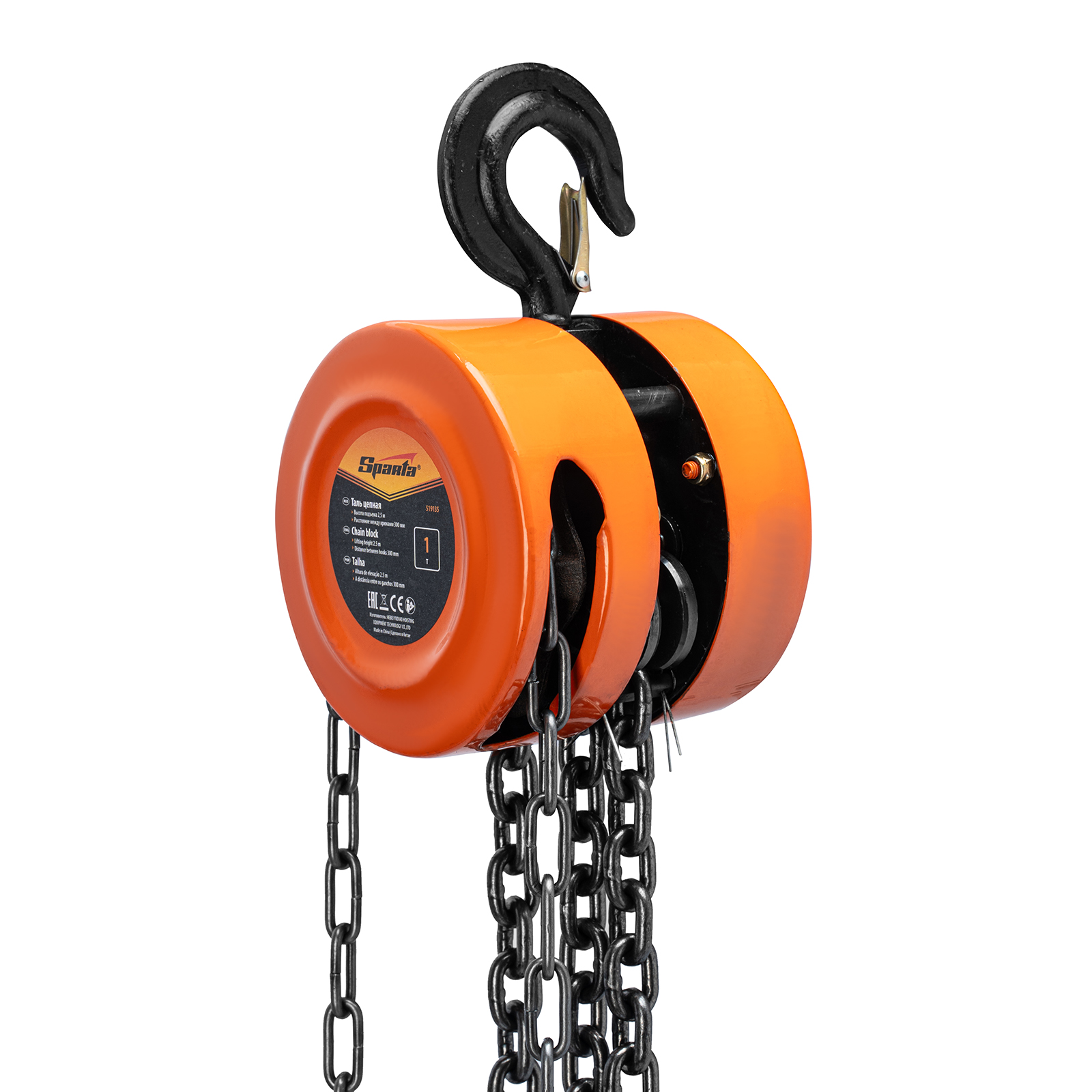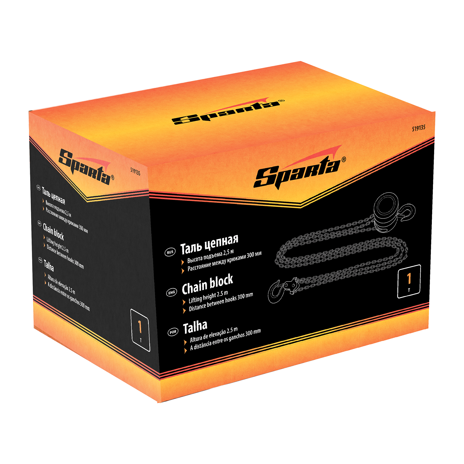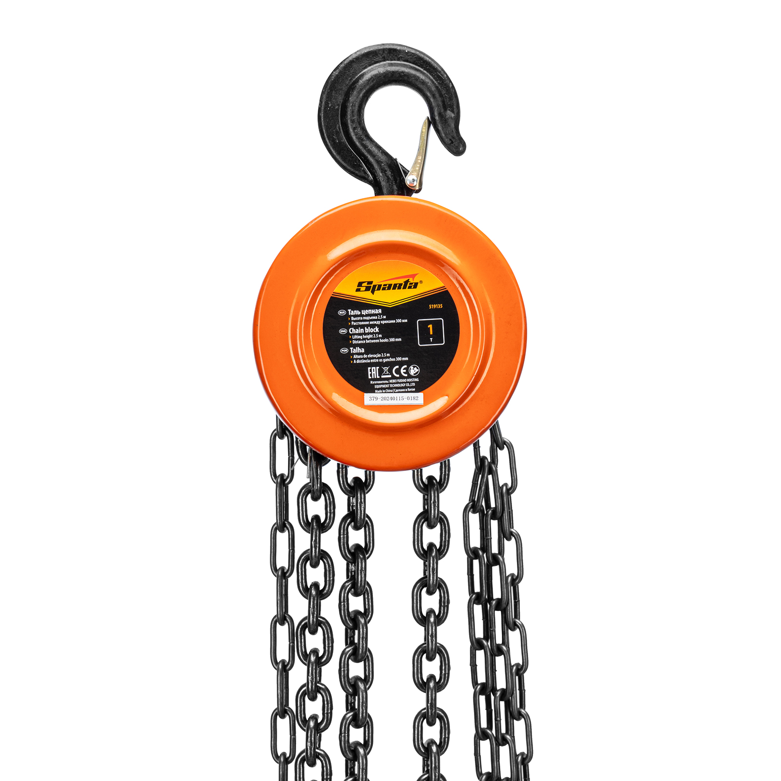 Таль цепная, 1 т, H подъема 2.5 м, расстояние между крюками 300 мм Sparta