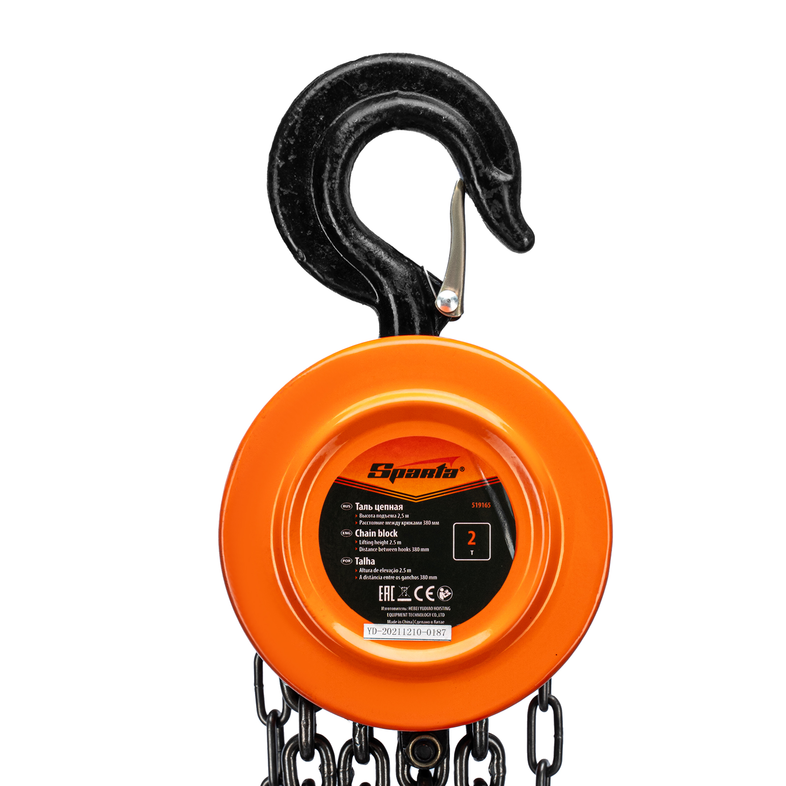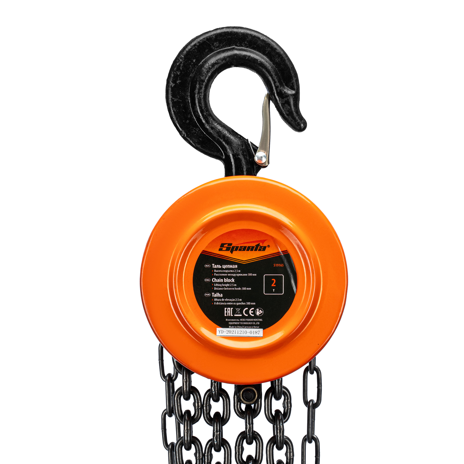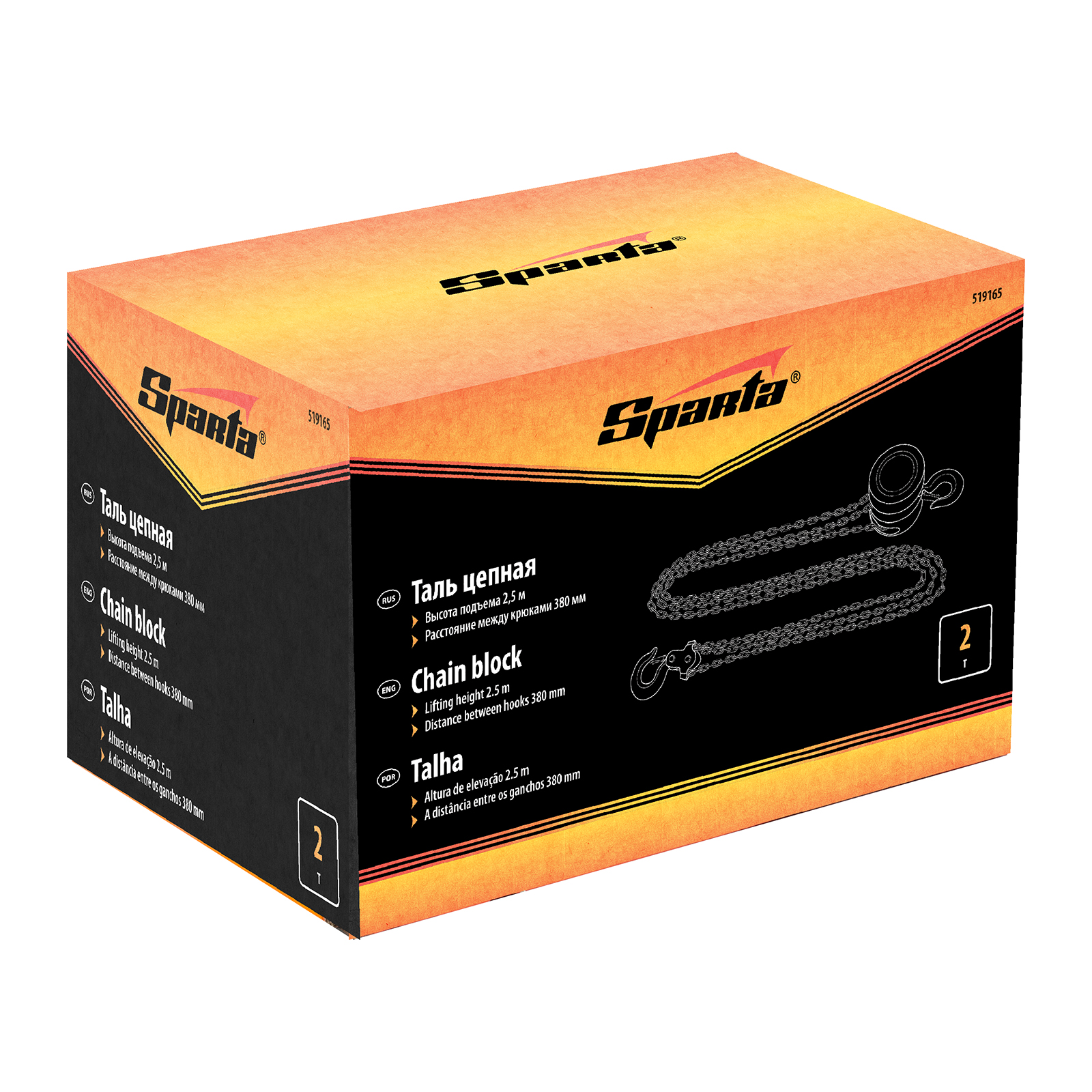 Таль цепная, 2 т, H подъема 2.5 м, расстояние между крюками 380 мм Sparta