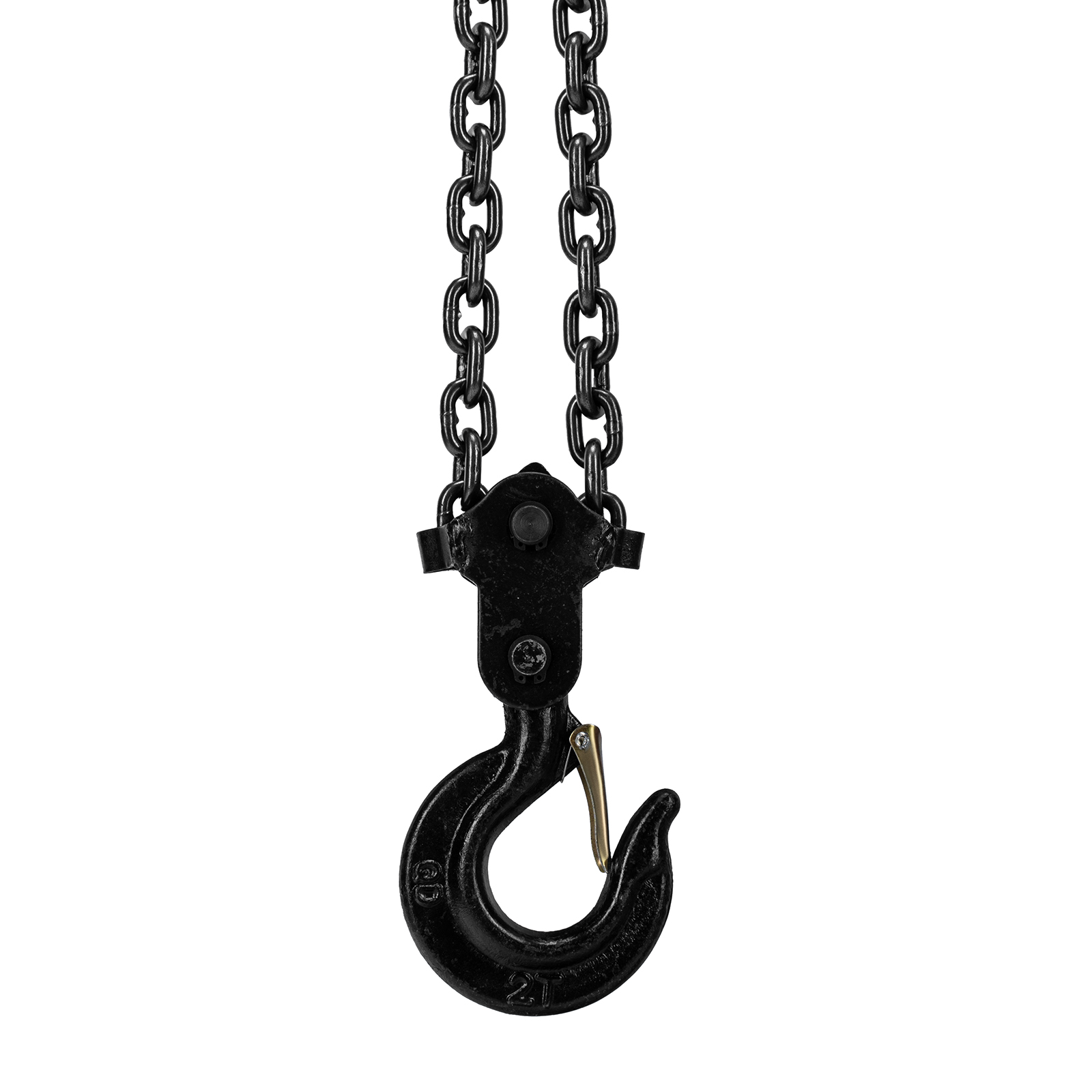 - Безопасность — встроенный тормоз исключает самопроизвольное опускание груза, кованые предохранительные защелки надежно фиксируют его.