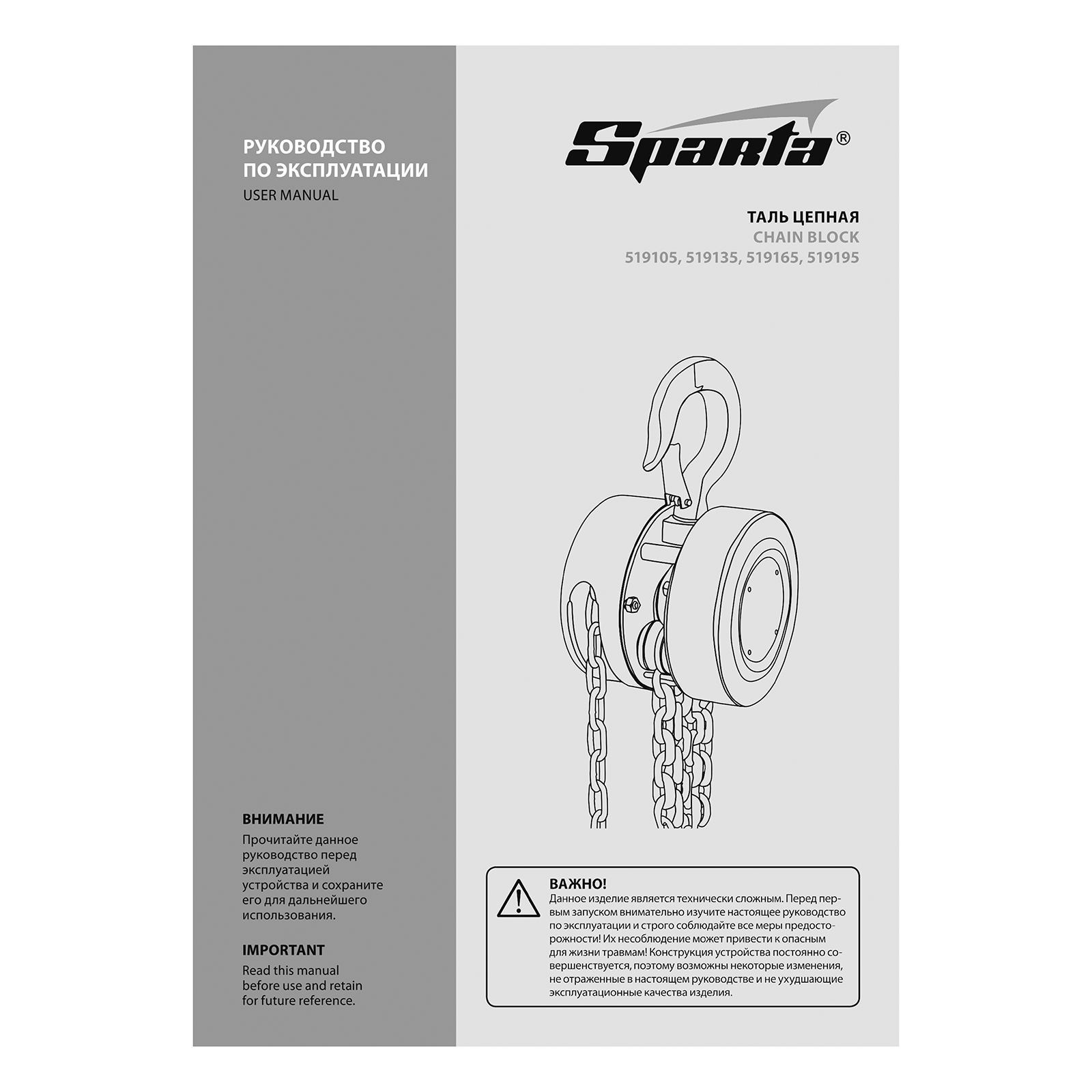 Таль цепная - 1 штРуководство по эксплуатации - 1 шт |