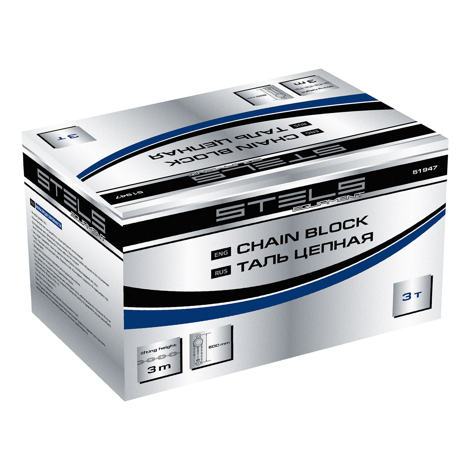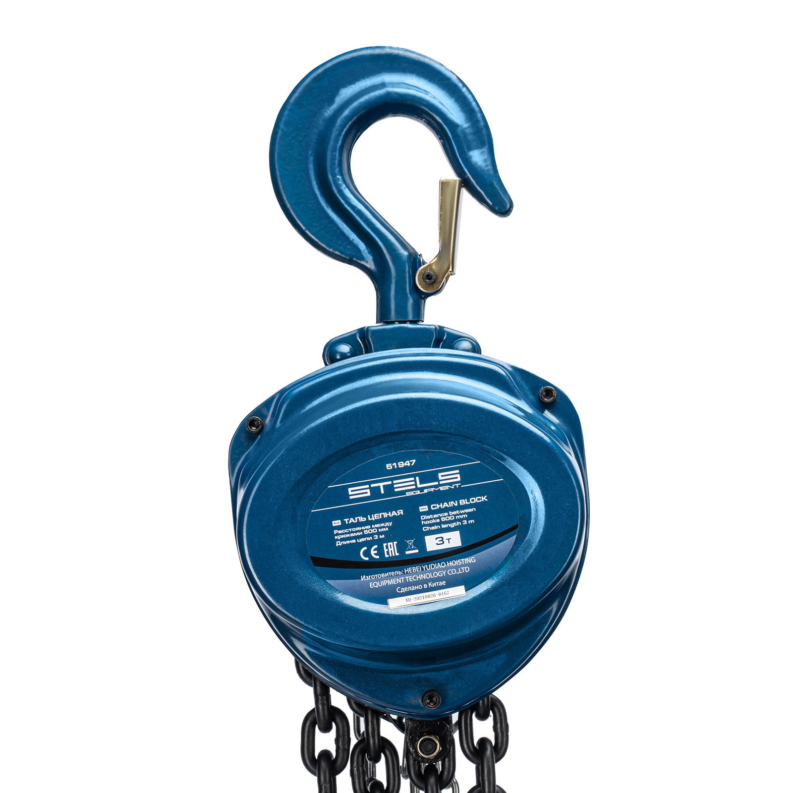 Таль цепная, 3 т, h подъема 3 м, расстояние между крюками 500 мм Stels
