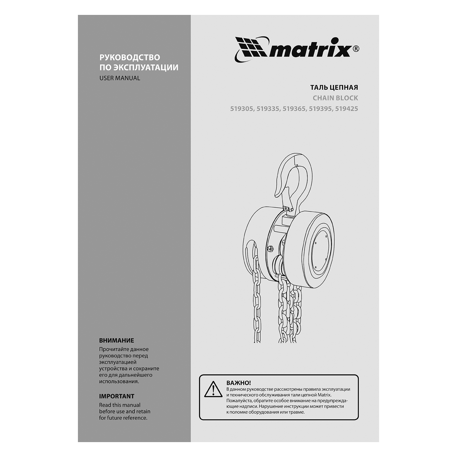 Таль цепная - 1 штРуководство по эксплуатации - 1 шт |