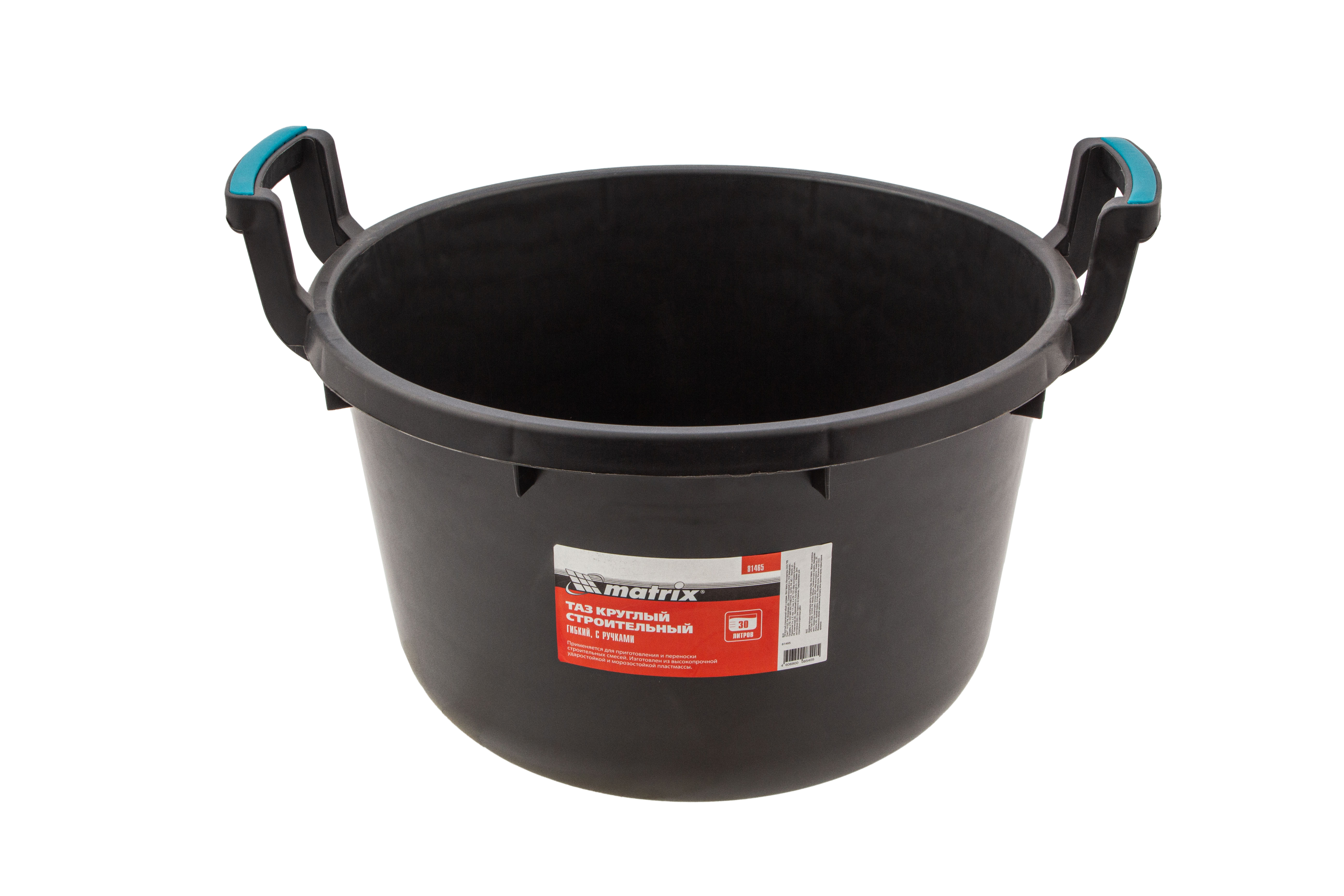 Таз круглый строительный гибкий Matrix 81465 объемом 30 л, с ручками, предназначен для замешивания строительных растворов любого типа при проведении ремонтно-отделочных работ. Благодаря диаметру 460 мм для приготовления смеси удобно использовать различный отделочный инструмент (шпатели, кисти). Пригодится такой таз и в быту: он удобен для хранения сыпучих материалов, сбора и утилизации мусора, проведения влажной уборки.