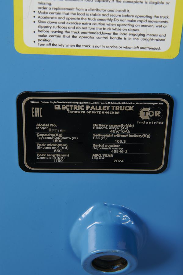 Тележка электрическая 1500 кг 1150 мм TOR EPT15H Li-pol 48/10 В/Ач*