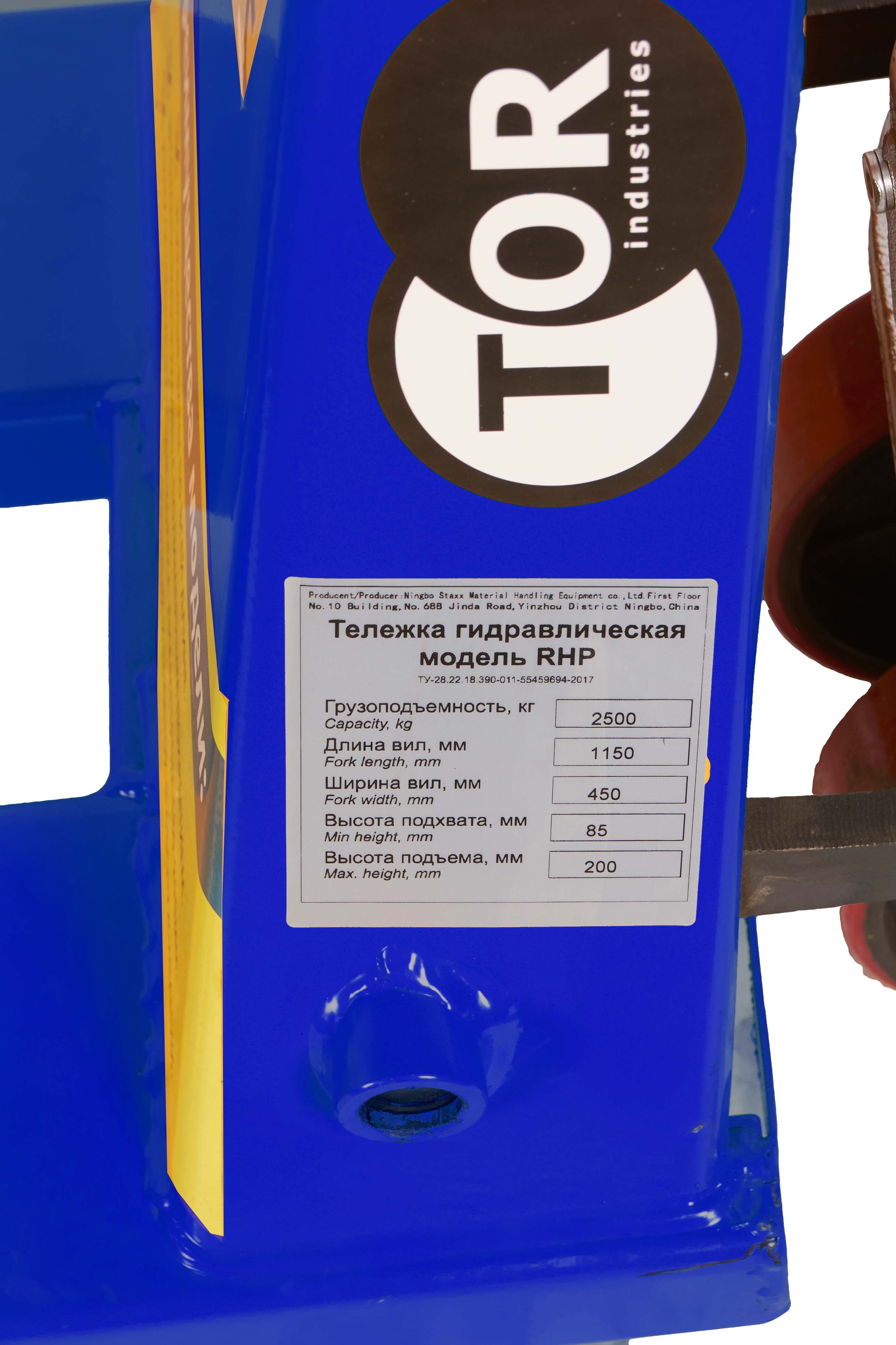 Тележка гидравлическая 2500 кг 800 мм полиуретановые колеса TOR RHP