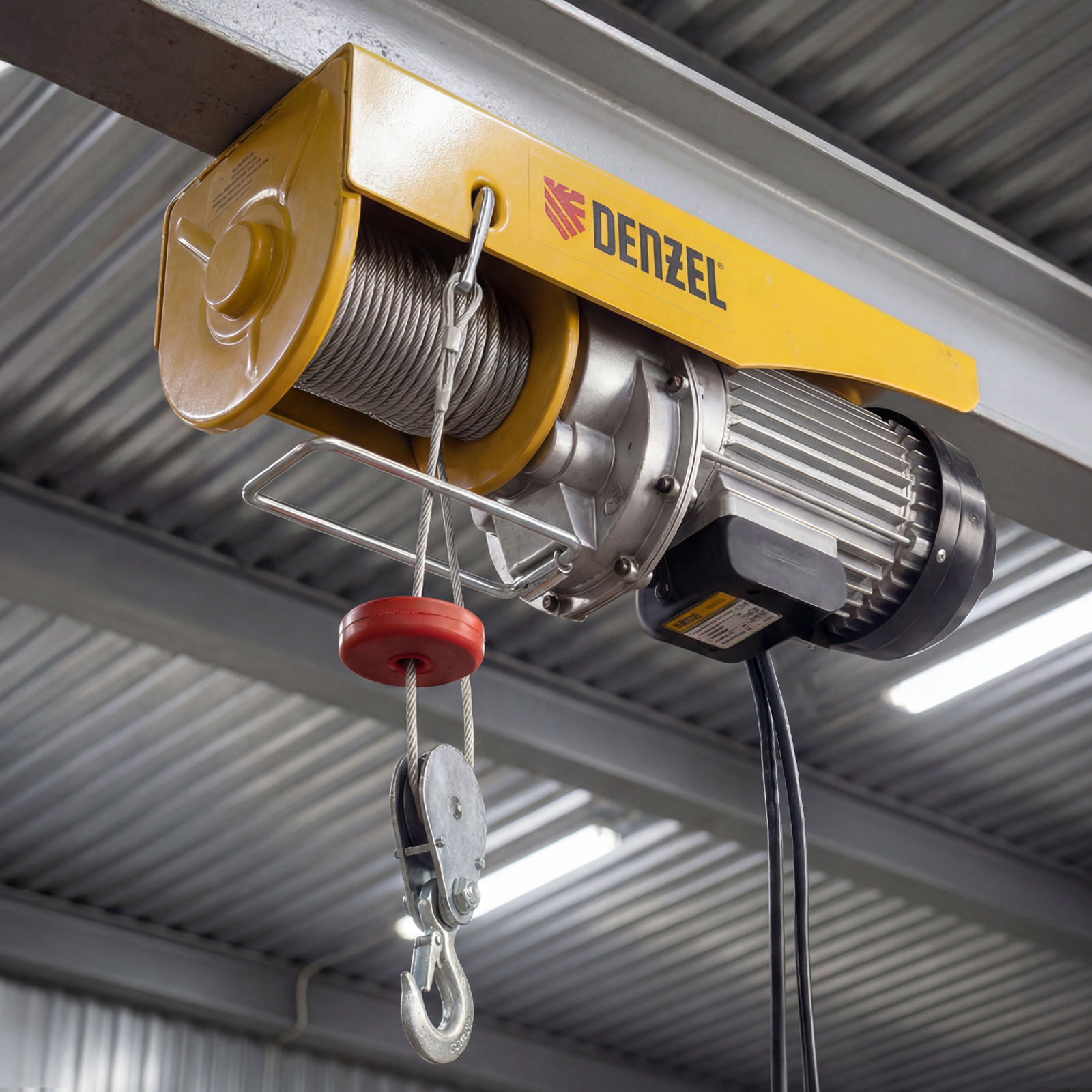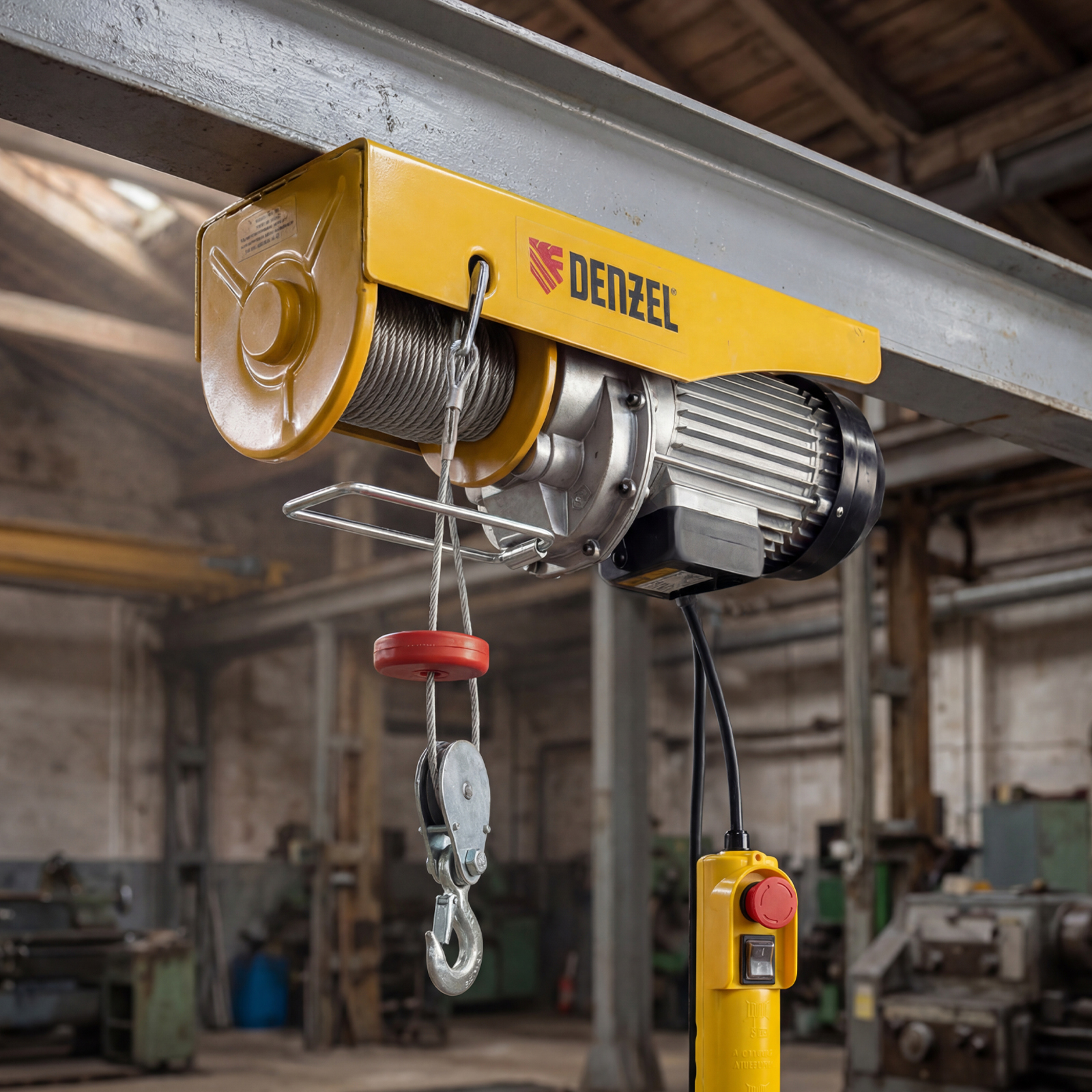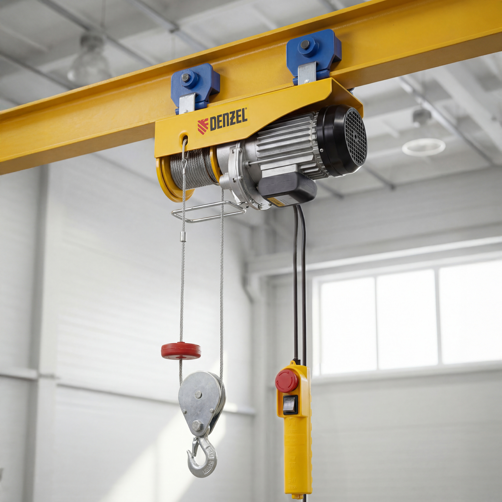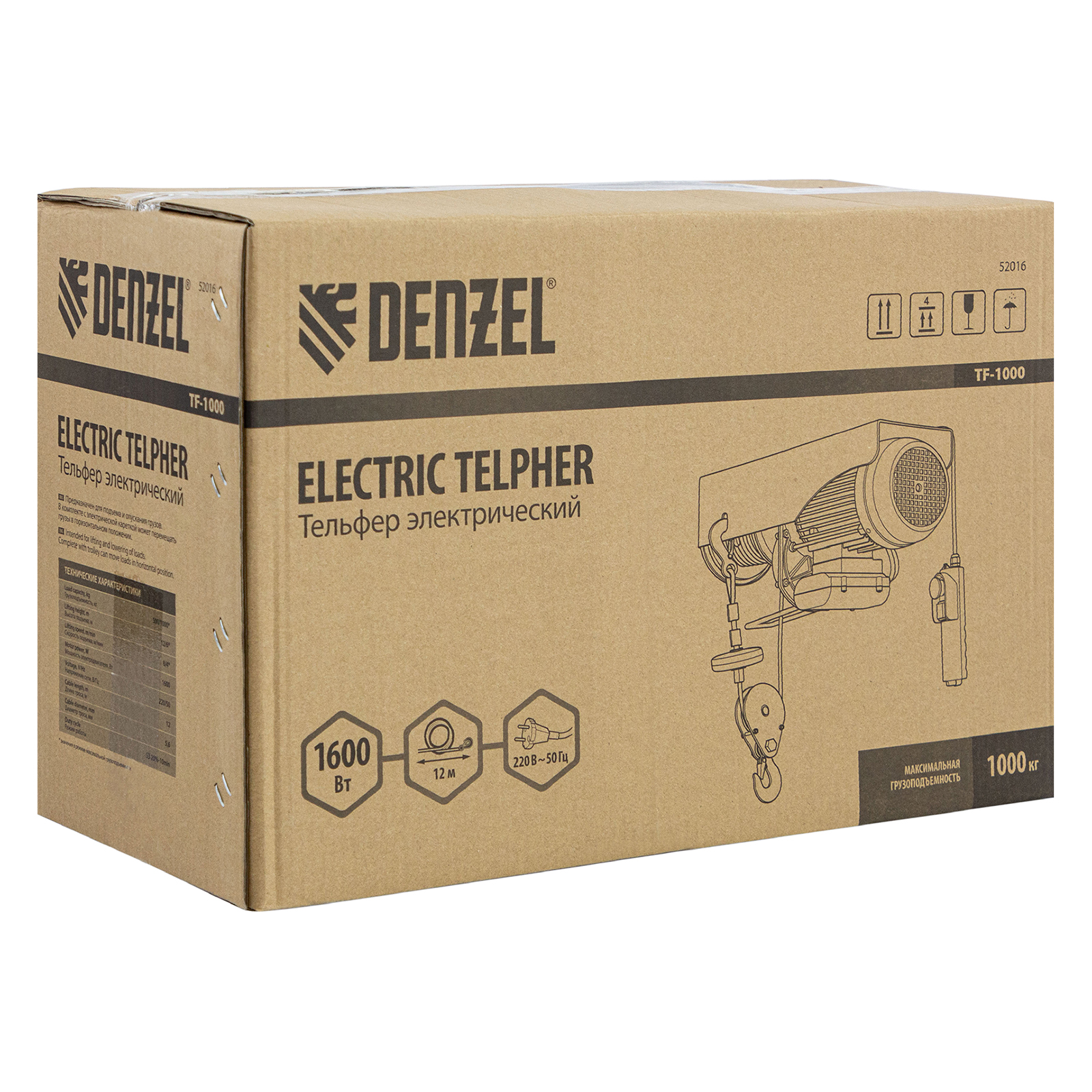 Тельфер электрический TF-1000,1 т, 1600 Вт, высота 12 м, 8 м/мин Denzel