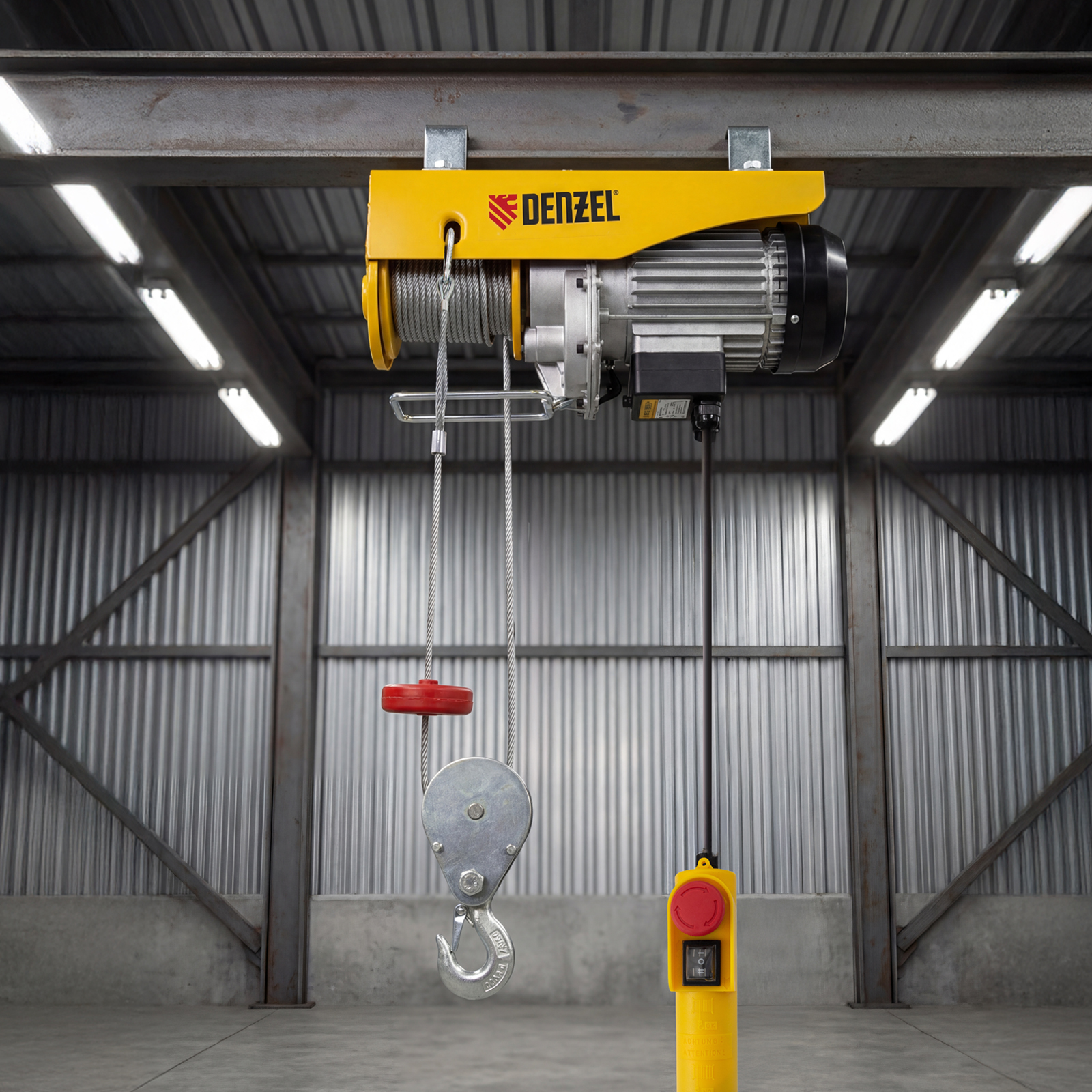 Тельфер электрический TF-800, 0.8 т, 1300 Вт, высота 12 м, 8 м/мин Denzel